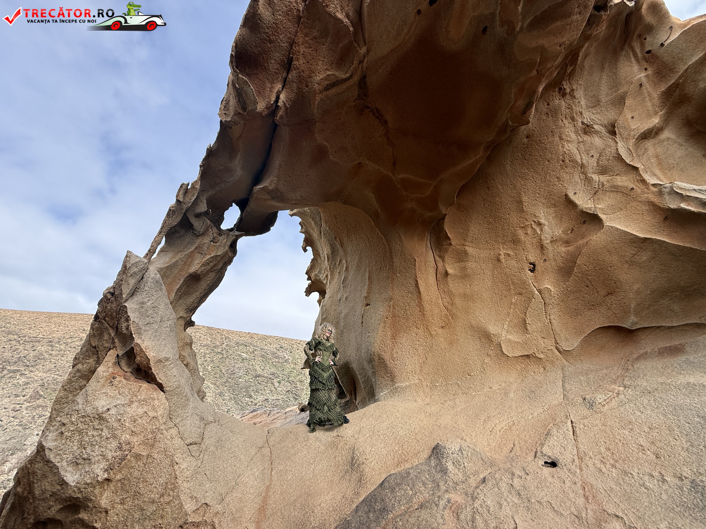 În inima insulei Fuerteventura, în vestul zonei centrale, Arco de las Peñitas este una dintre acele “descoperiri” care merită drumul: o arcadă naturală sculptată de eroziune, ascunsă în Barranco de las Peñitas, aproape de Betancuria. Ținutul e un amfiteatru de roci vulcanice, cu forme rotunjite și culoare ocru, care devine spectaculos mai ales la lumină de dimineață sau la apus.