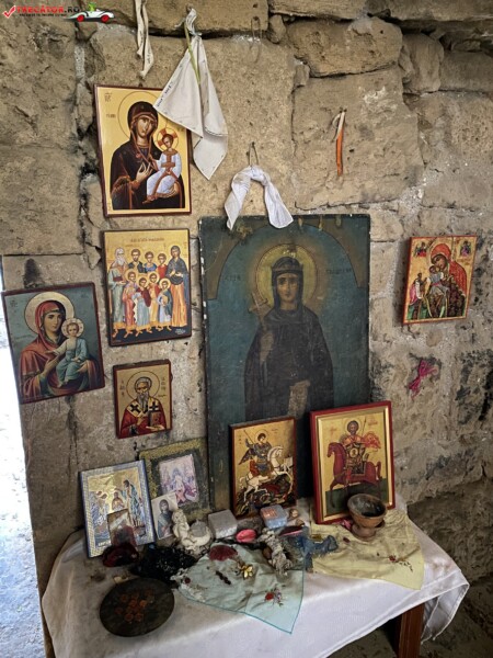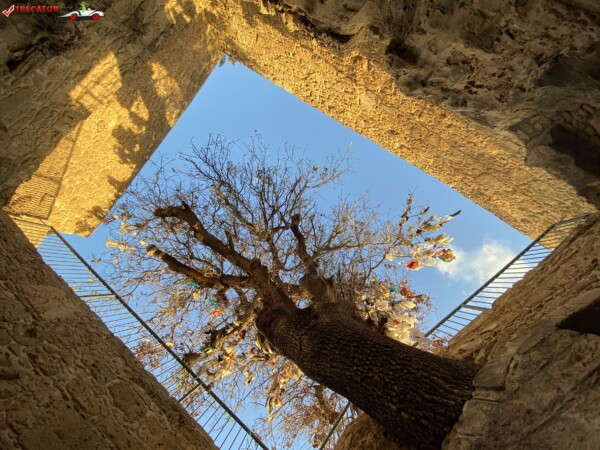 Un element aparte este copacul de terebinth (pistachio) situat deasupra intrării — recunoscut ca „arbore sfânt” — unde vizitatorii leagă bucăți de material cu speranța vindecării sau a împlinirii dorințelor.