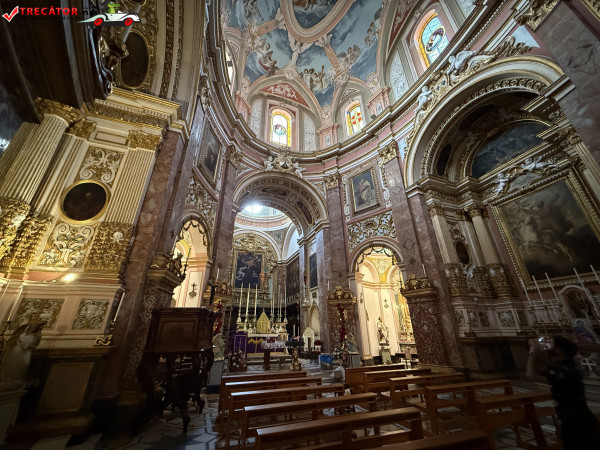 Interiorul bisericii este ornamentat cu sculpturi și picturi realizate de artiști renumiți, precum Mattia Preti, Stefano Erardi, Michele Bellanti și Giuseppe Calì. Unul dintre elementele de mare valoare îl reprezintă cadrul bogat decorat al tabloului principal, lucrat de Pietro Paolo Troisi.