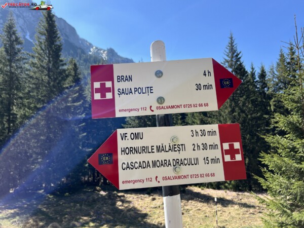 Marcaj traseu: triunghi galben până la poiana din Valea Gaură, apoi cruce roșie, apoi punct roșu. Traseul este bine semnalizat și nu ai cum sa te rătăcești. Cascada Moara Dracului nu este una spectaculoasă.