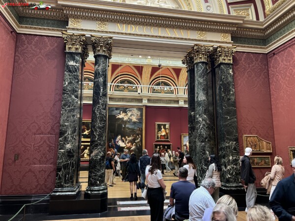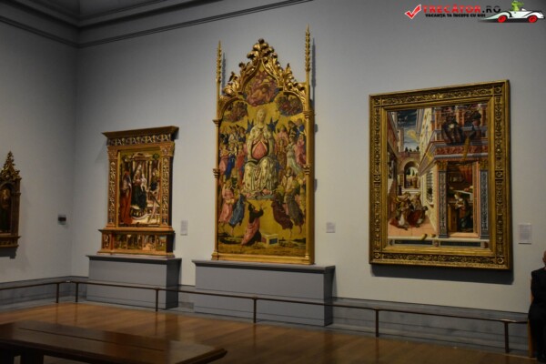 Colectia expusa in Muzeul Galeriilor Nationale (National Gallery) este impartita cronologic, in Aripa Sainsbury fiind expuse cele mai vechi picturi, din perioada 1260-1510. Doua dintre cele mai faimoase lucrari sunt Fecioara si Pruncul, de Leonardo da Vinci, si Venus si Morte, de Botticelli. Dogele, de Giovanni Bellini, este considerat a fi cel mai maret portret venetian al tuturor timpurilor.