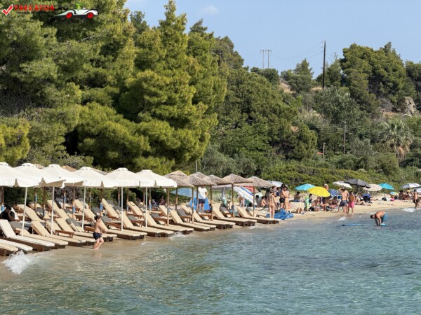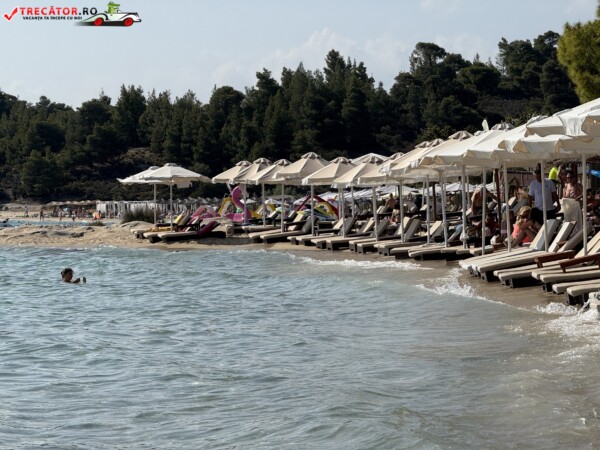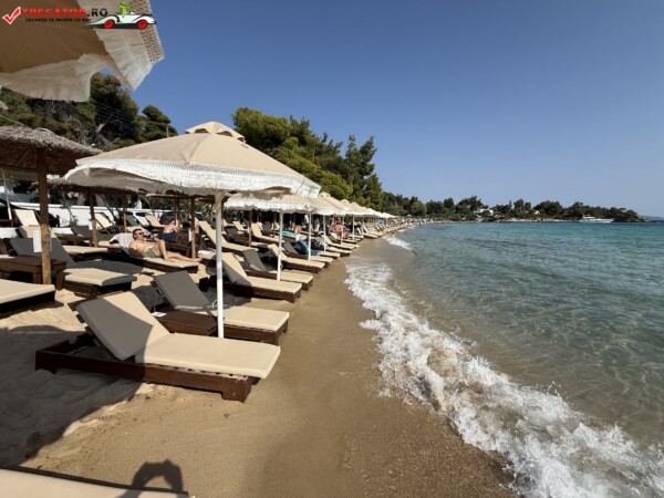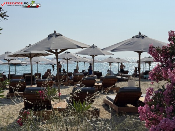 Pentru mâncare, există cantină cu fast-food și baruri, însă adusul propriilor gustări pe șezlongurile private nu este permis. În sezonul de vârf și în weekend, plaja poate deveni aglomerată – ideal pentru o vizită matinală, când atât locurile de parcare, cât și atmosfera sunt mai plăcute.