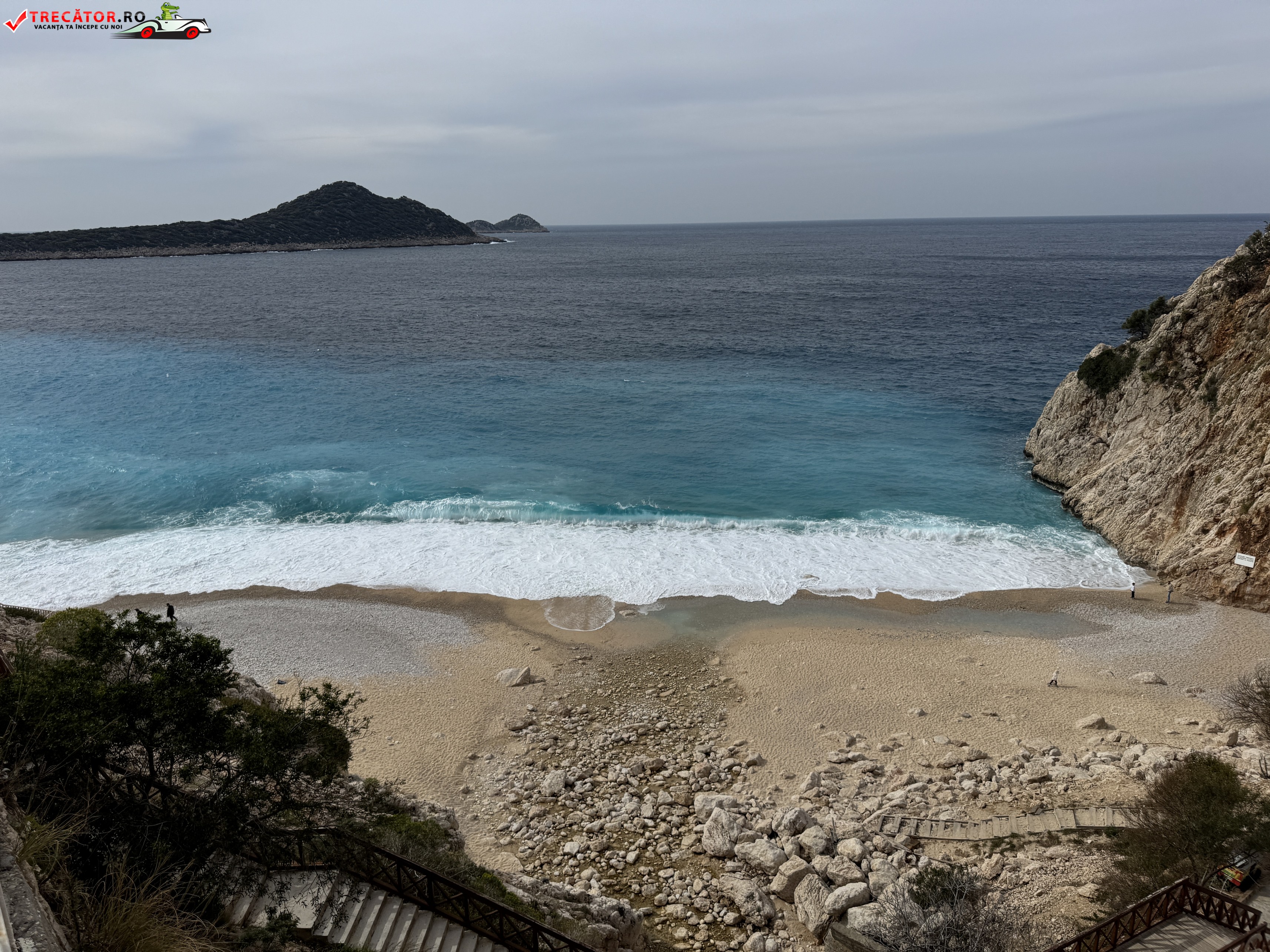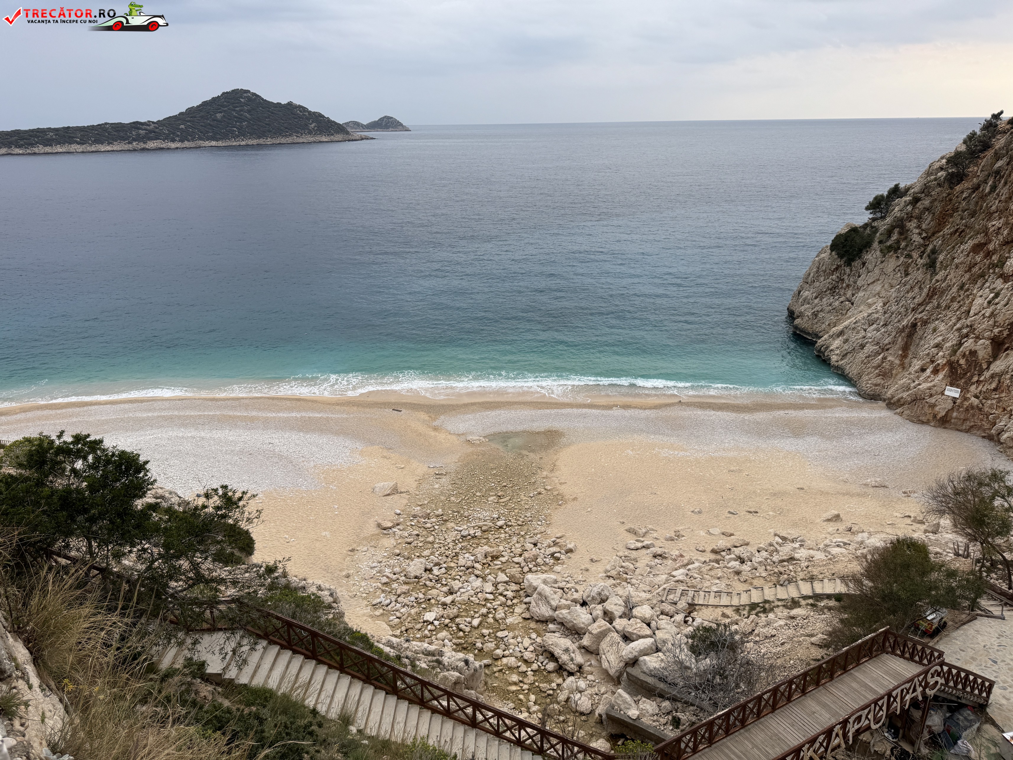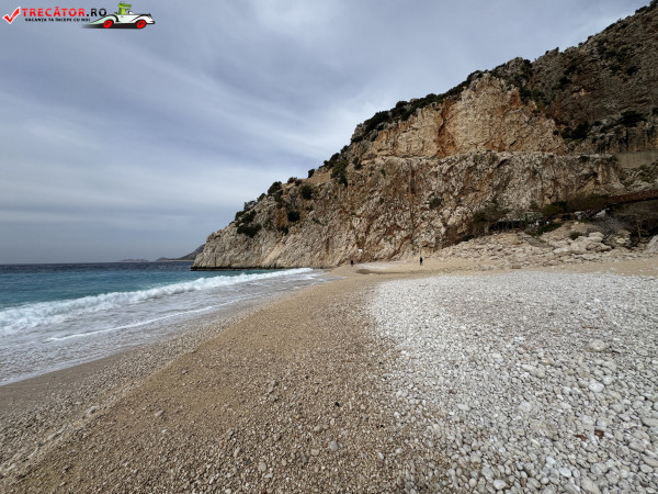 Kaputaş Beach este una dintre imaginile-emblemă ale Rivierei Turcești, ascunsă într-un golf îngust de pe șoseaua de coastă dintre Kaş și Kalkan, în provincia Antalya. Plaja impresionează prin contrastul dintre stâncile abrupte, nisipul auriu cu pietriș fin și apa în nuanțe intense de turcoaz, o culoare pentru care locul a devenit celebru în întreaga Turcie. Golful are un aspect spectaculos tocmai datorită poziționării sale la gura unui canion, unde relieful și lumina mediteraneană creează un peisaj memorabil.