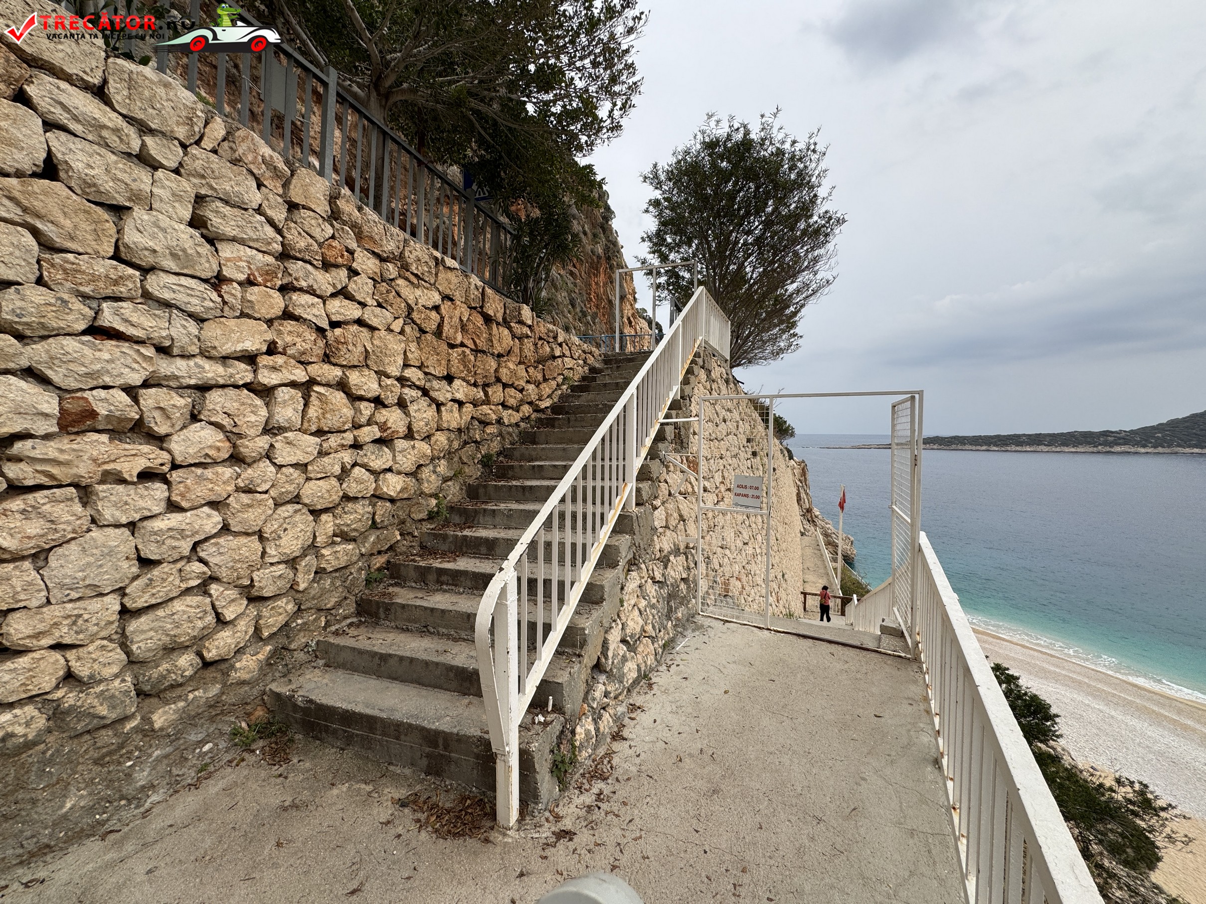 Accesul către plajă se face coborând o scară lungă de la nivelul drumului panoramic, iar tocmai această coborâre contribuie la farmecul locului. Kaputaş Beach atrage atât turiști aflați în vacanță în Kaş sau Kalkan, cât și pasionați de fotografie, datorită cadrului dramatic și mării foarte limpezi. Statutul de plajă cu Blue Flag confirmă standarde ridicate privind calitatea apei și administrarea zonei, iar popularitatea ridicată transformă lunile de vară în perioada cea mai animată. Pentru un decor mai liniștit și fotografii reușite, dimineața rămâne momentul ideal al zilei.