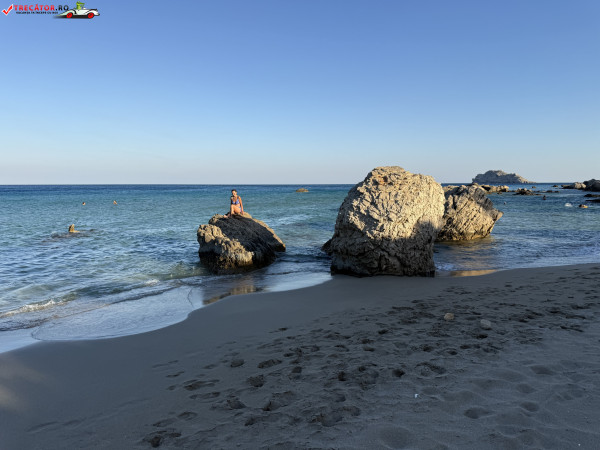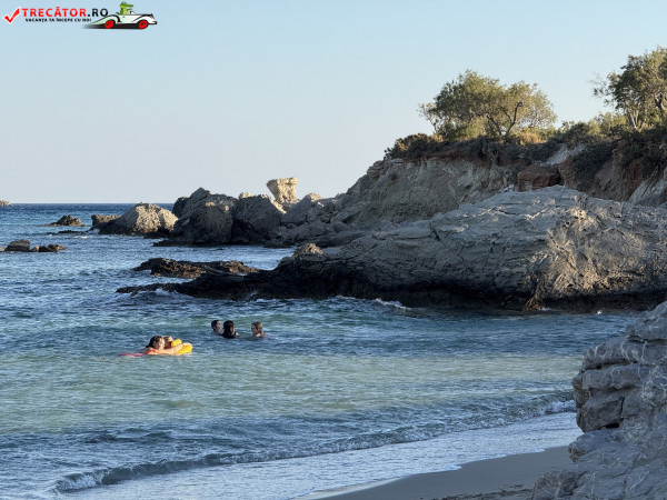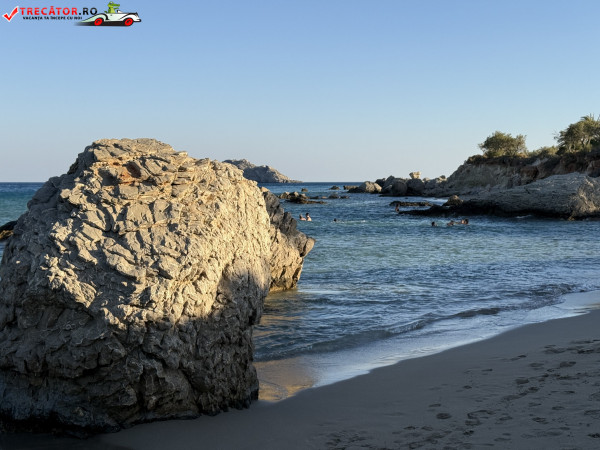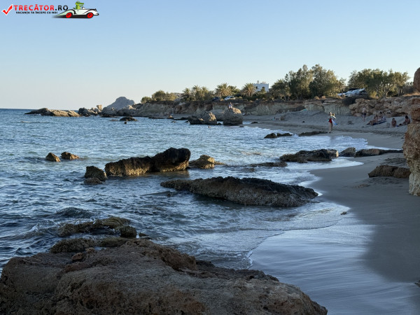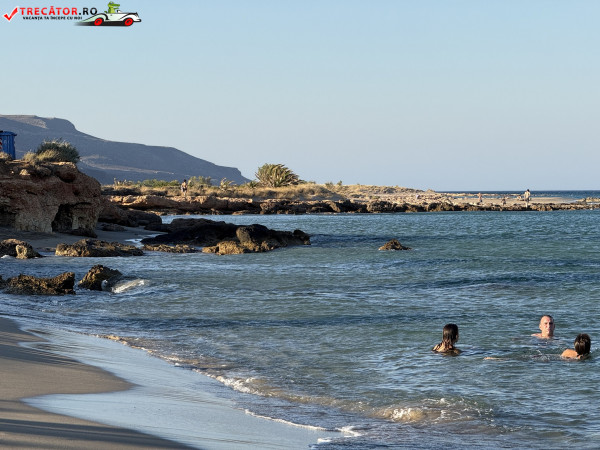 Atmosfera este liniștită, neaglomerată chiar și în weekend, iar împrejurimile naturale îți oferă o experiență autentică cretană. Doar stâncile intense oferă puțin umbră, iar zona este ofertantă pentru fotografii memorabile.