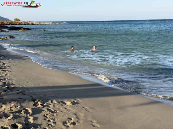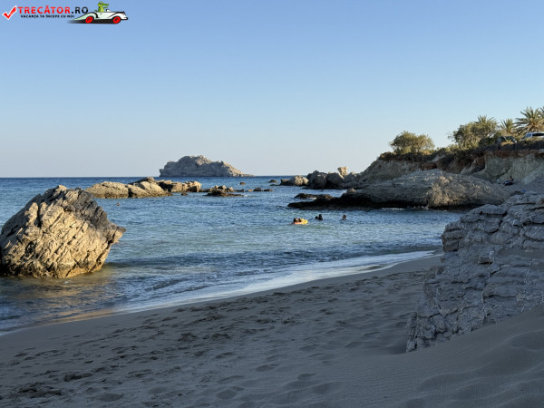 Atmosfera este liniștită, neaglomerată chiar și în weekend, iar împrejurimile naturale îți oferă o experiență autentică cretană. Doar stâncile intense oferă puțin umbră, iar zona este ofertantă pentru fotografii memorabile.