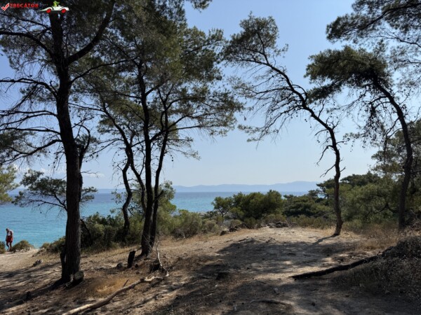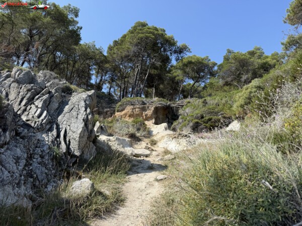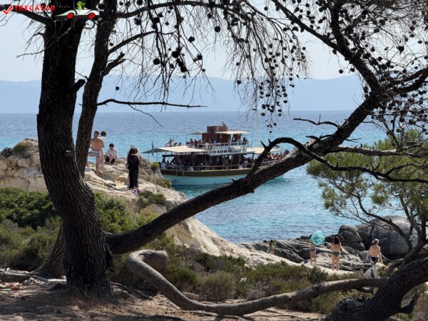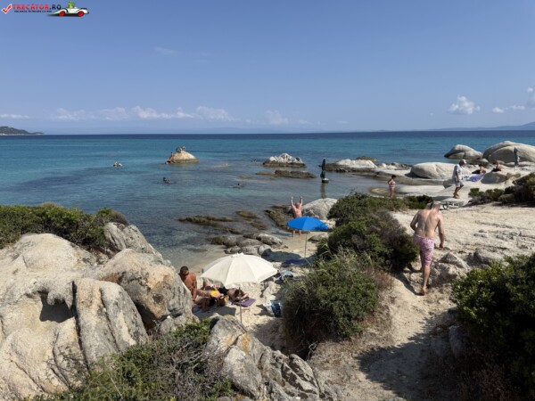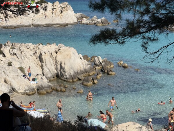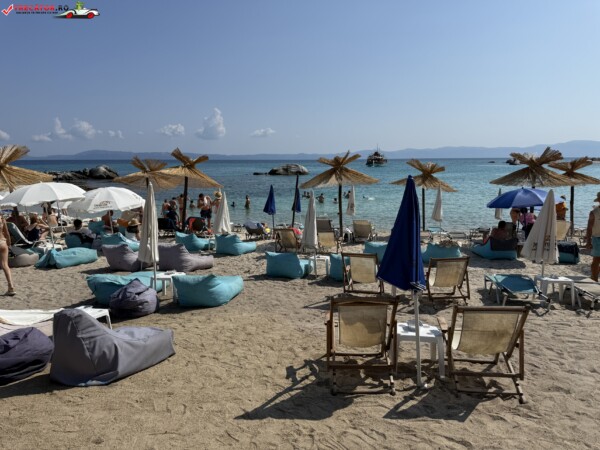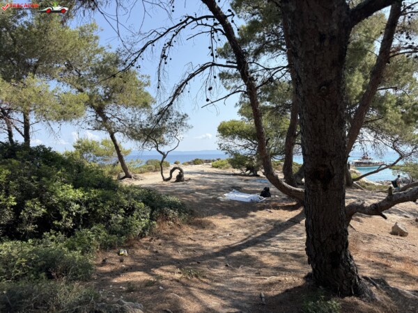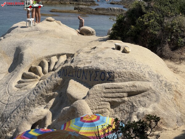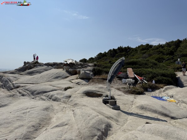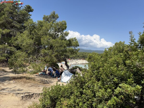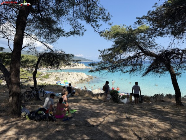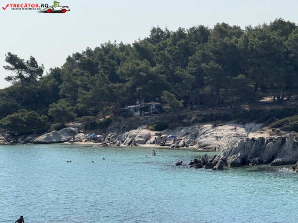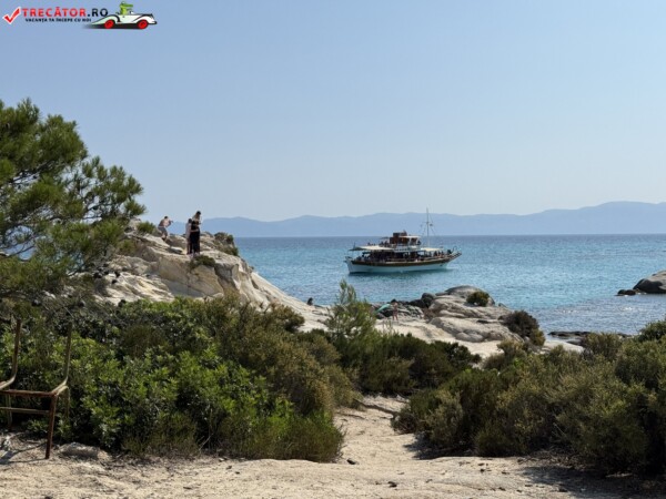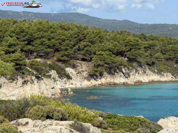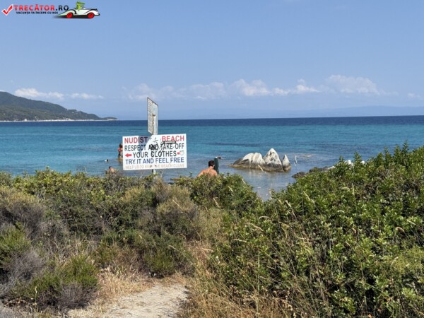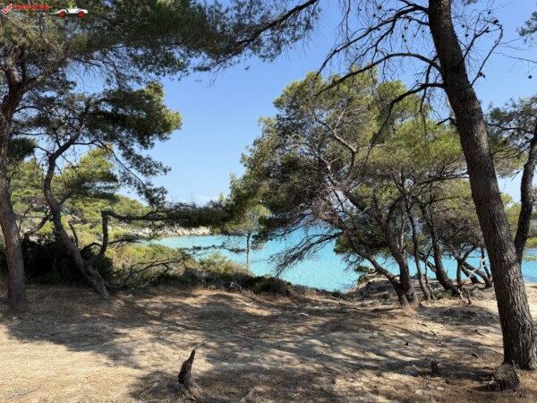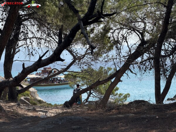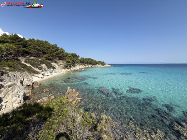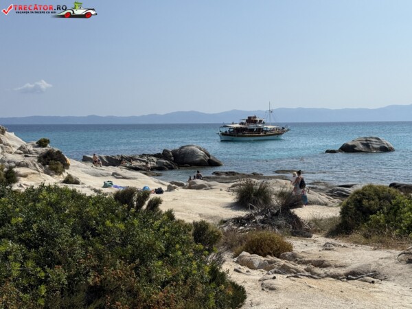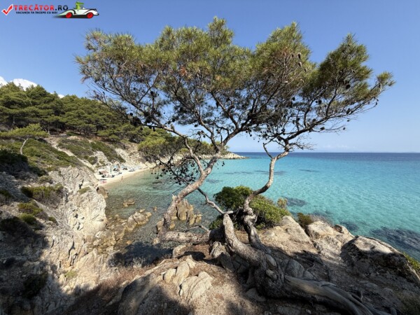 Principala „Cala Portokali” este amenajată cu șezlonguri și bar, dar covoarele mai mici din jur oferă intimitate totală, umbră din pini și liniște . Accesul se face cu mașina, pe un drum forestier neasfaltat și apoi pe jos câțiva zeci de metri, existând locuri de parcare lângă traseu . Nu există toalete, dușuri sau salvamari, așa că e indicat să vii cu apă, gustări și umbrele personale, mai ales în vârf de sezon . Pentru fotografi, snorkelari și aventurieri, acest loc este un paradis – se pot explora peșteri subacvatice, formațiuni stâncoase și covoare de nisip izolate.