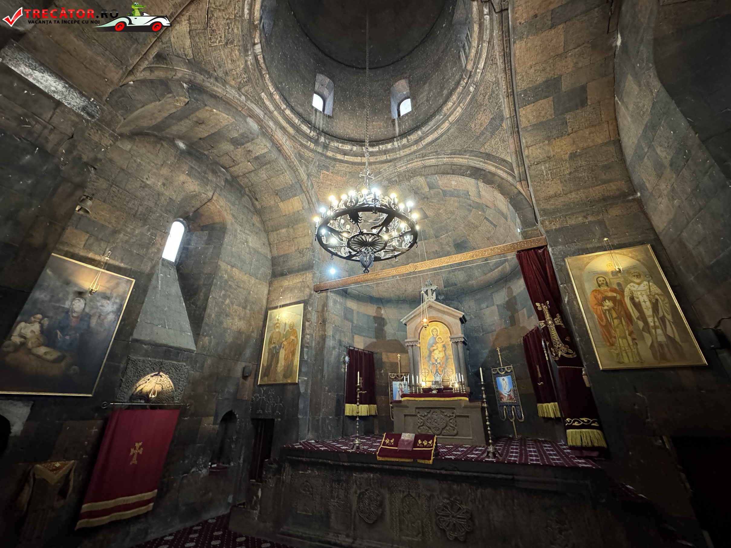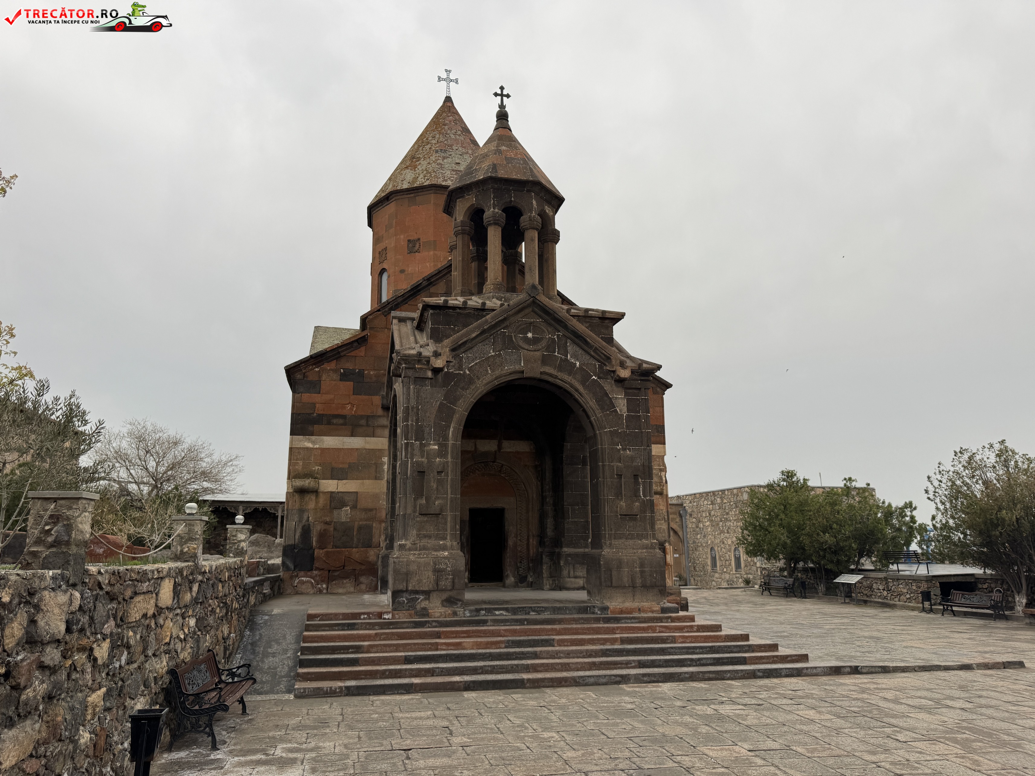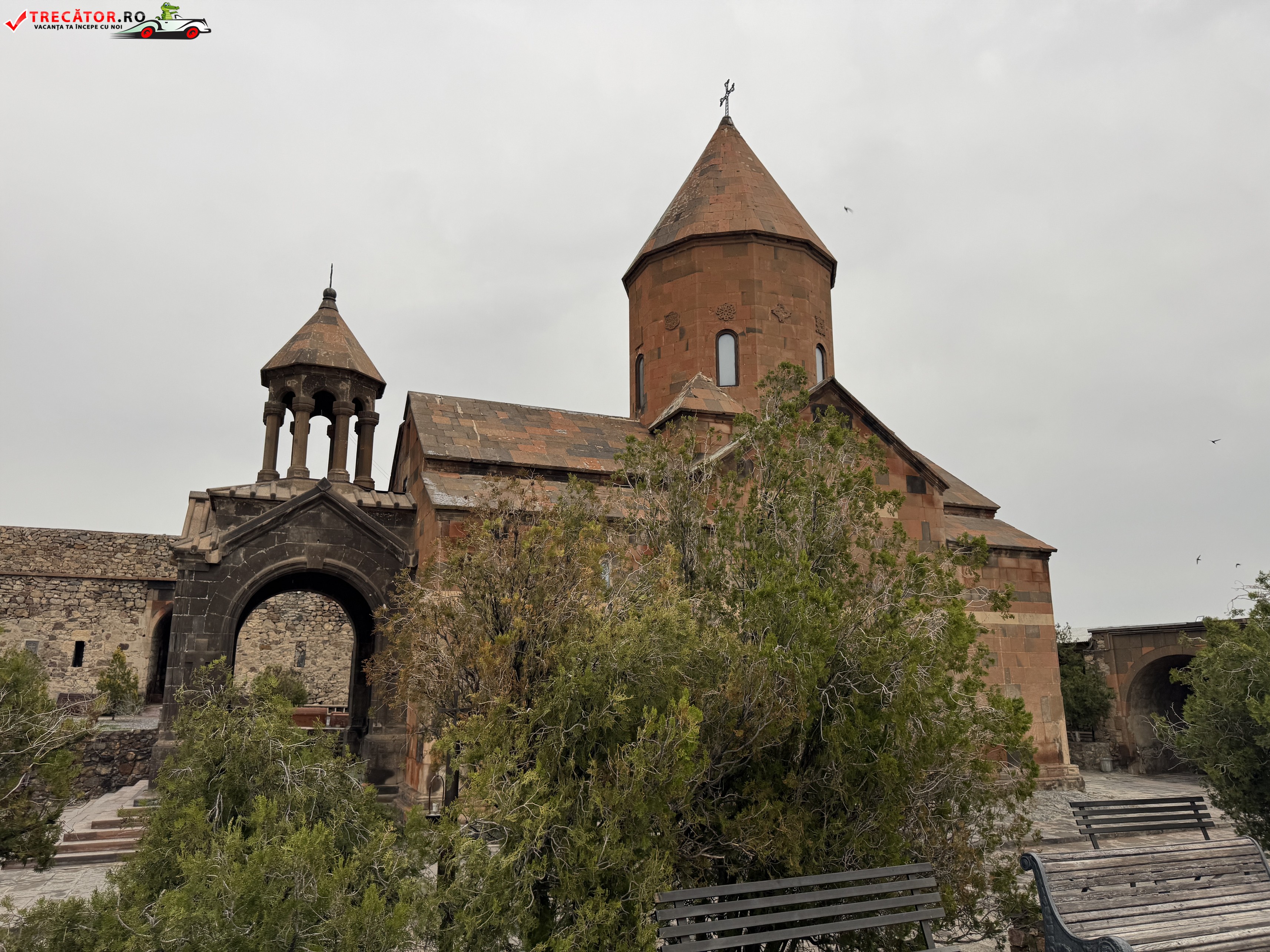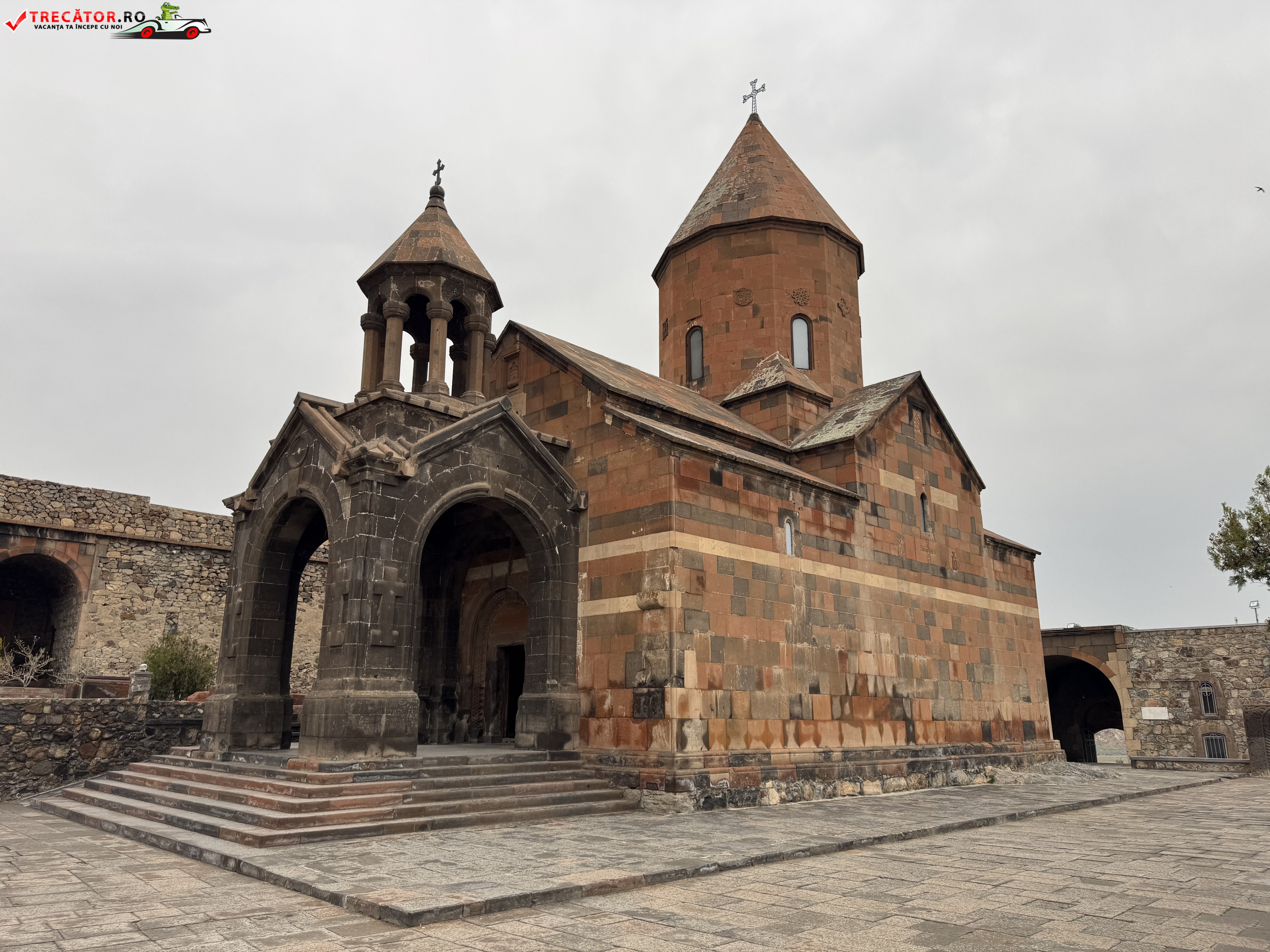 Ansamblul actual poartă în mare parte amprenta secolului al XVII-lea, însă originile sacre ale locului coboară până în secolul al VII-lea, când a fost ridicată aici o capelă timpurie. Biserica principală, Surb Astvatsatsin, completează imaginea austeră și puternică a arhitecturii armene, cu ziduri sobre și o prezență aproape fortificată. În interiorul complexului, temnița asociată cu Grigore Luminătorul rămâne punctul cel mai căutat, încărcat de emoție și memorie religioasă.