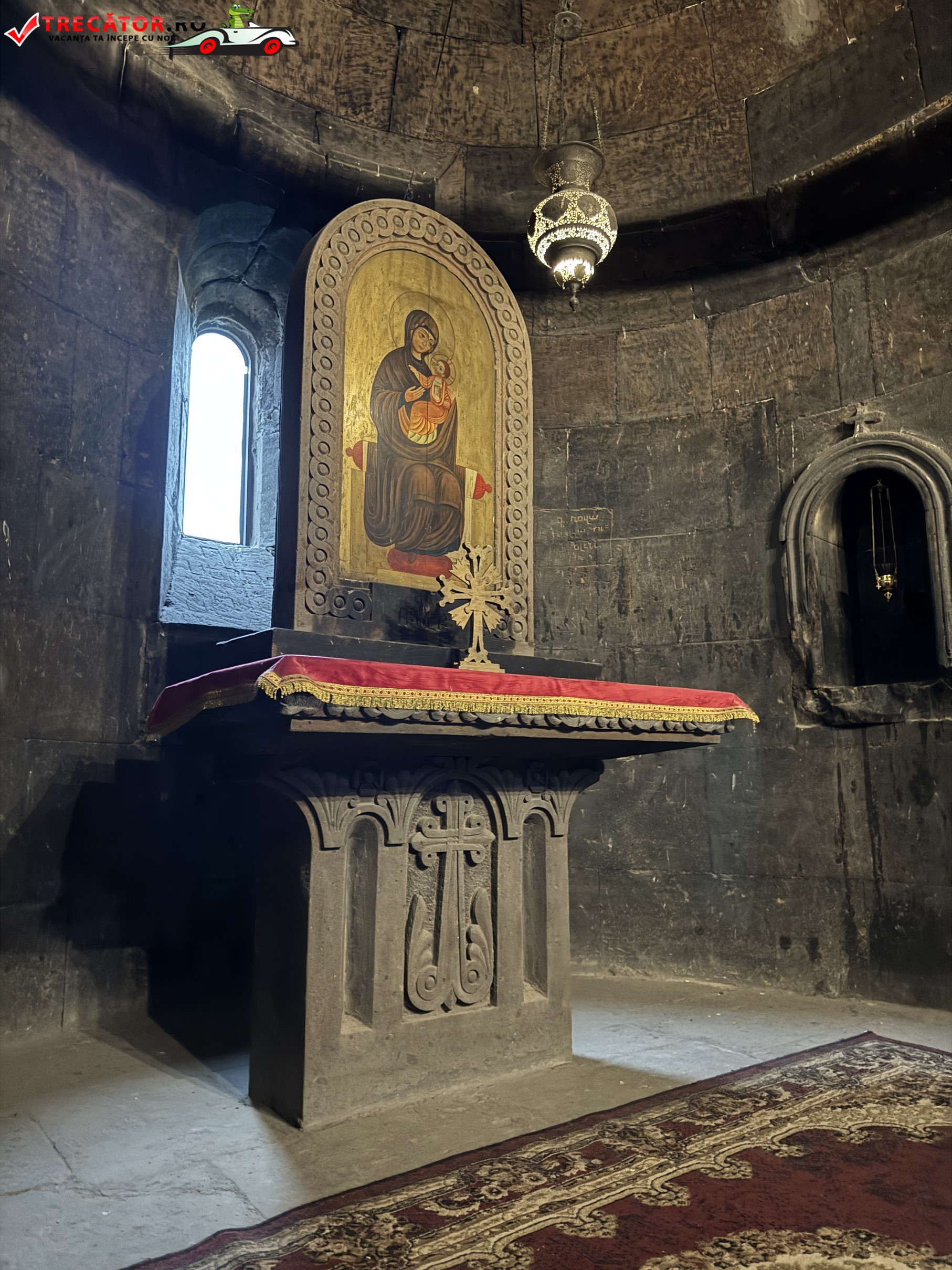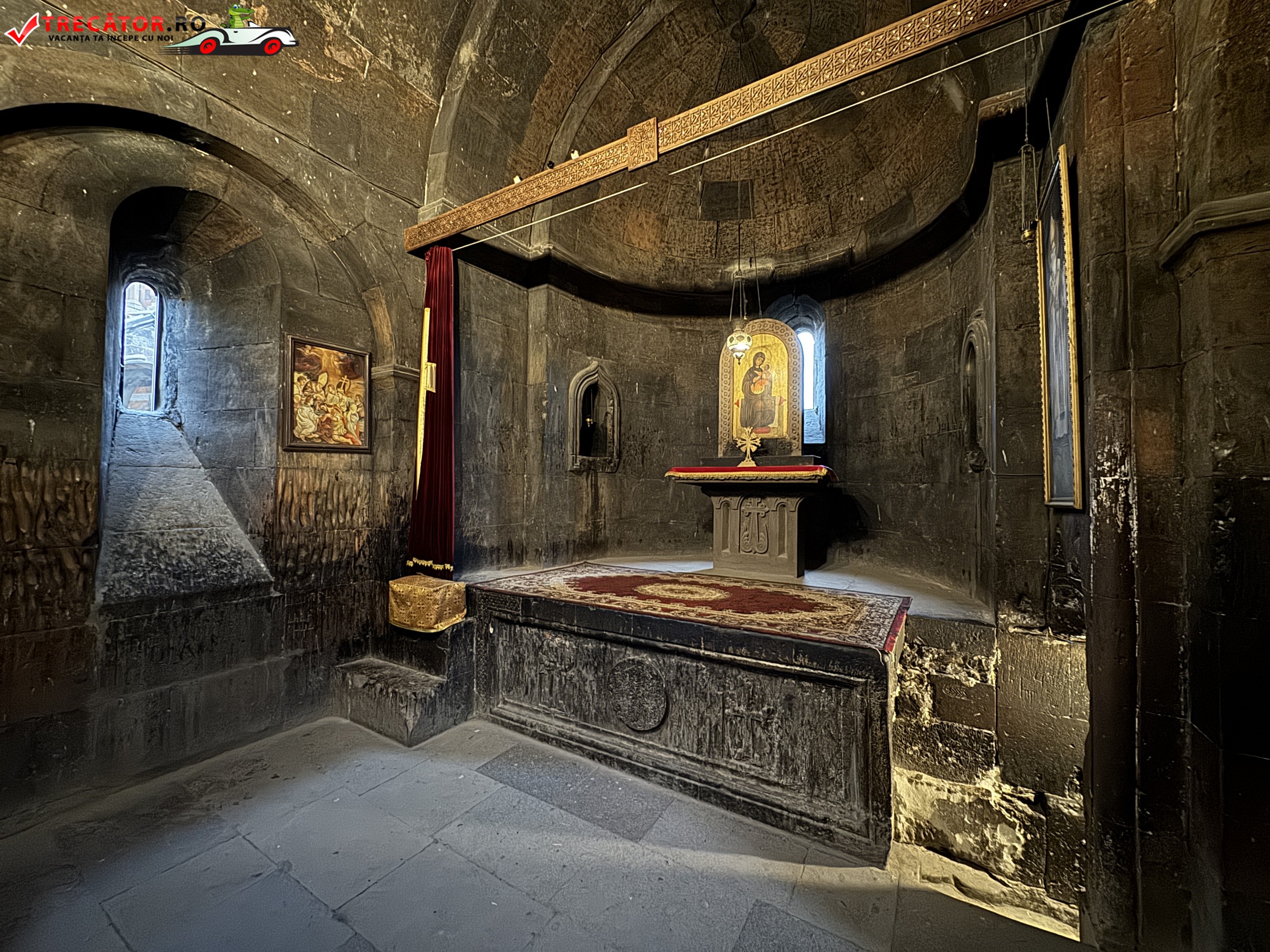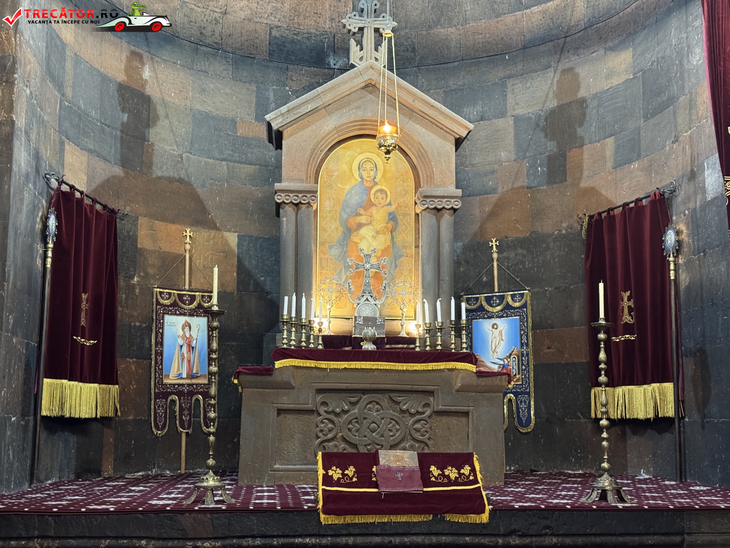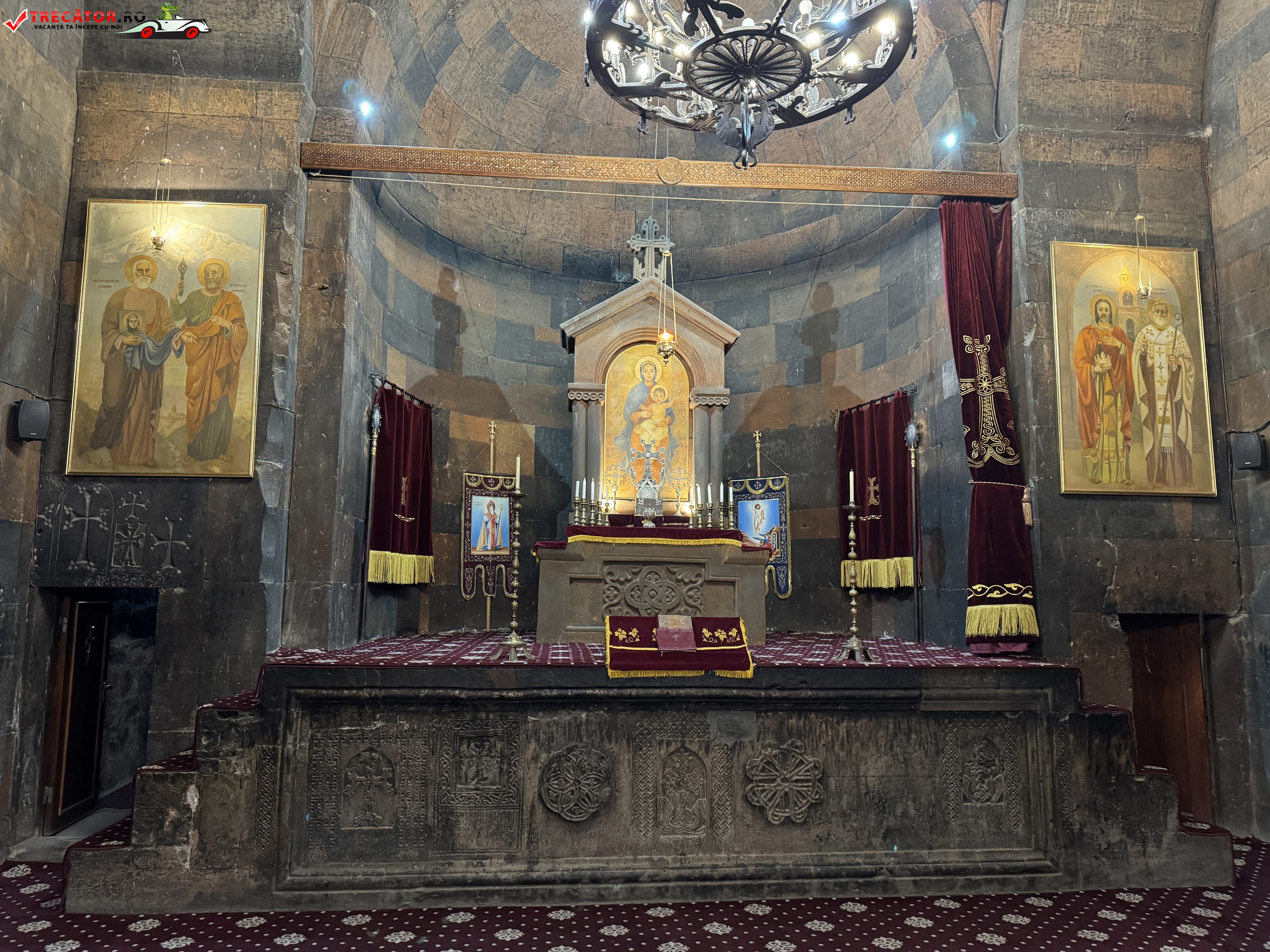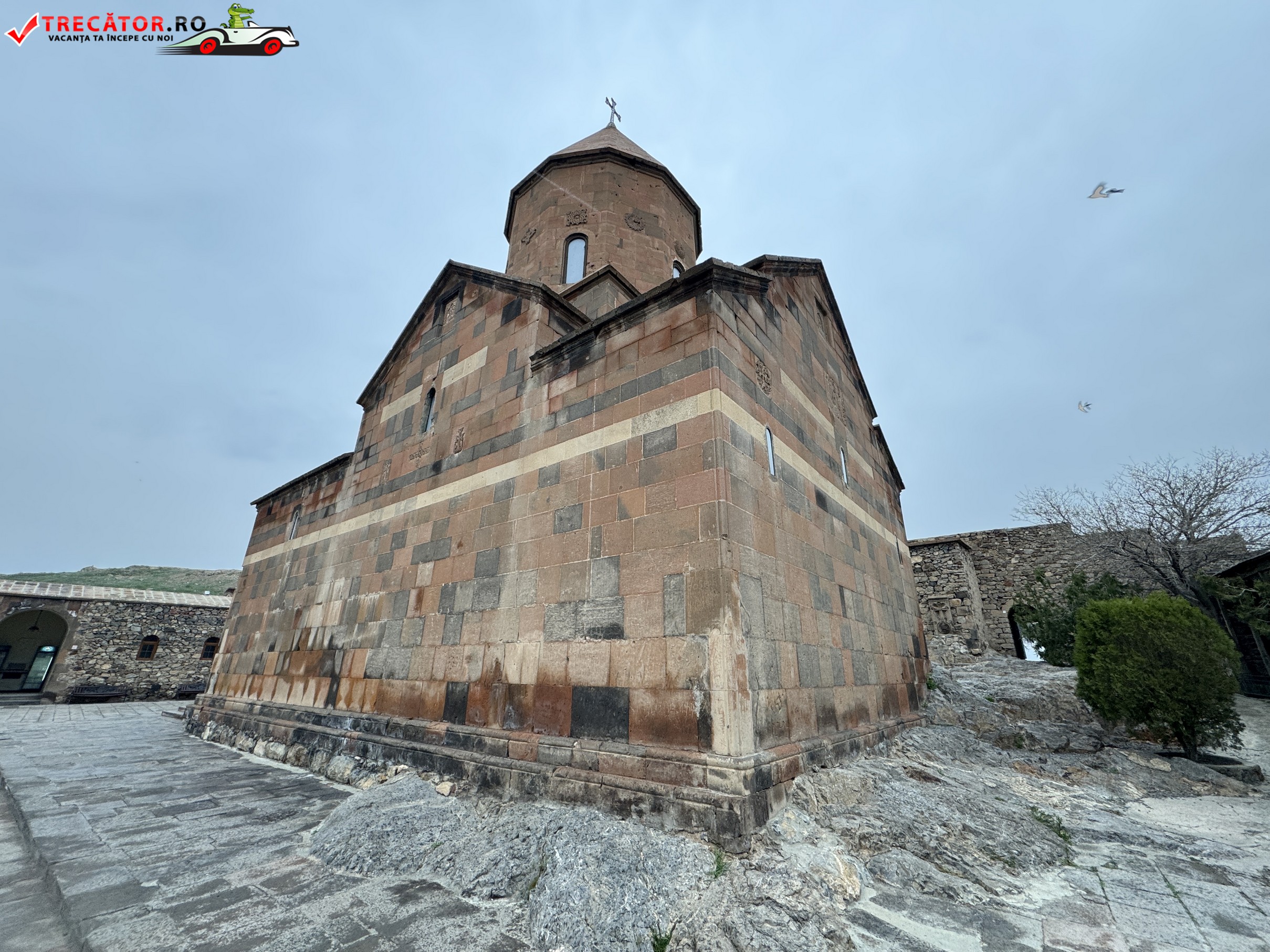 Ansamblul actual poartă în mare parte amprenta secolului al XVII-lea, însă originile sacre ale locului coboară până în secolul al VII-lea, când a fost ridicată aici o capelă timpurie. Biserica principală, Surb Astvatsatsin, completează imaginea austeră și puternică a arhitecturii armene, cu ziduri sobre și o prezență aproape fortificată. În interiorul complexului, temnița asociată cu Grigore Luminătorul rămâne punctul cel mai căutat, încărcat de emoție și memorie religioasă.