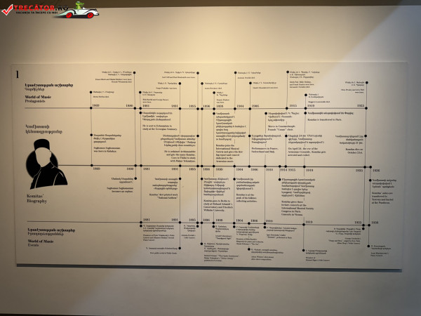 Punctul central al vizitei rămâne expoziția permanentă, organizată în opt săli tematice. Parcursul urmărește cronologia vieții lui Komitas, relația cu epoca sa, activitatea etnografică, creația muzicală, muzica sacră, aparițiile scenice și ecoul lăsat după dispariție. Instituția include, de asemenea, o sală de concerte, o bibliotecă și un program activ de expoziții temporare, conferințe, concerte și proiecte educaționale. Rezultatul este un muzeu care nu conservă doar obiecte, ci pune în mișcare idei, sunete și contexte istorice.