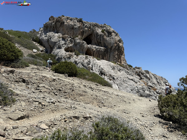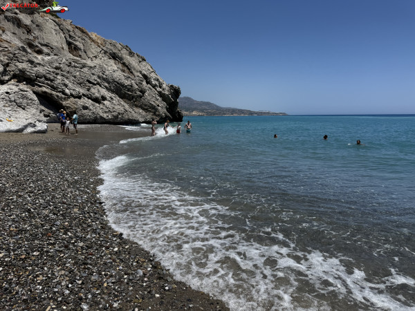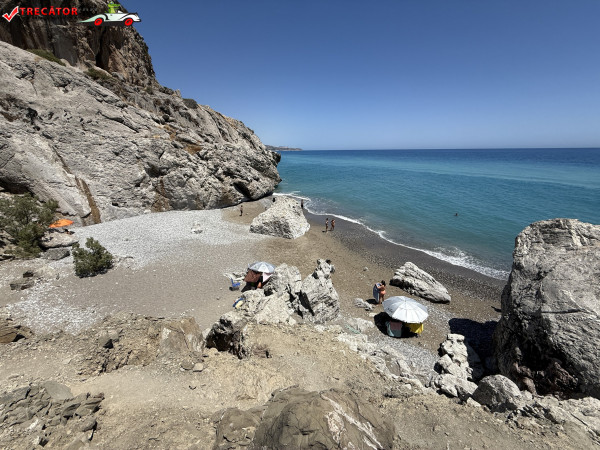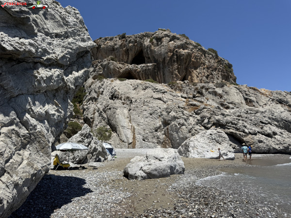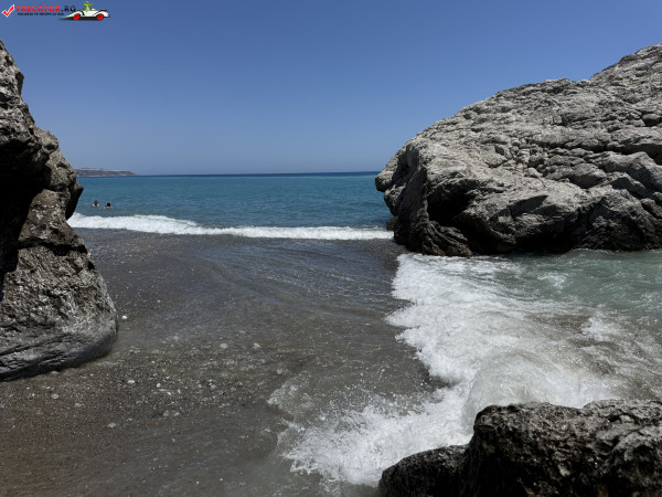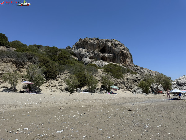 Accesul se face pe un drum asfaltat urmat de o potecă abruptă, sau printr-o scurtă plimbare de la plaja Kamboula. Fundalul marin este preponderent nisipos, ideal pentru înot și snorkeling, iar peșterile din stânca impunătoare de deasupra plajei poartă o legendă locală: acolo s-ar fi ascuns un bandit, iar pe vârful dealului se zăresc ruinele unui vechi sanctuar.