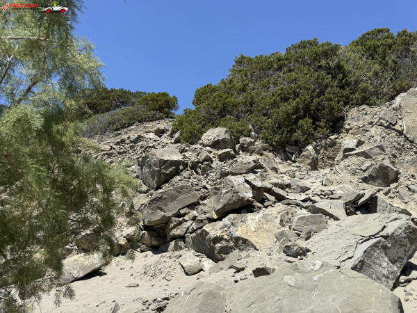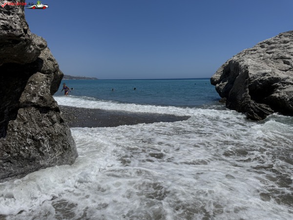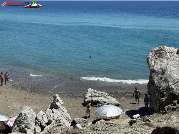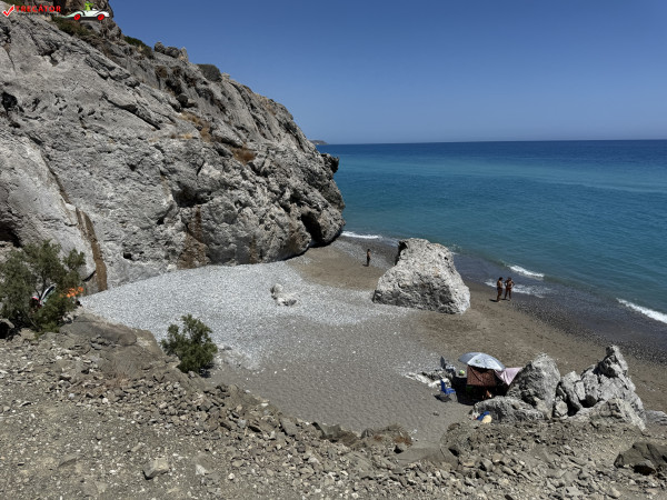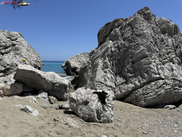 Accesul se face pe un drum asfaltat urmat de o potecă abruptă, sau printr-o scurtă plimbare de la plaja Kamboula. Fundalul marin este preponderent nisipos, ideal pentru înot și snorkeling, iar peșterile din stânca impunătoare de deasupra plajei poartă o legendă locală: acolo s-ar fi ascuns un bandit, iar pe vârful dealului se zăresc ruinele unui vechi sanctuar.