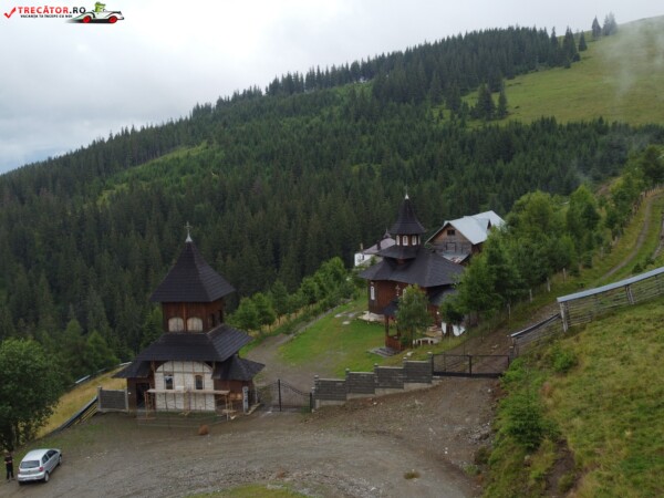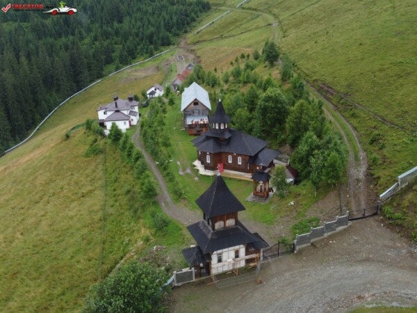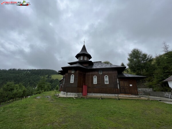 Biserica Mănăstirii „Sf. Cruce” se află la o înălţime de 1350 m pe Masivul Suhard. Biserica este construită din lemn, pe temelie de beton armat şi acoperită cu draniţă, după un proiect întocmit de arhitectul Doru-Ghiocel Olaş din Suceava. Interiorul este tencuit şi pictat în tehnica „tempera” de pictorul Costân Viorel din Botoşani, iar exteriorul este lambrisat cu scândură de brad lăcuită.