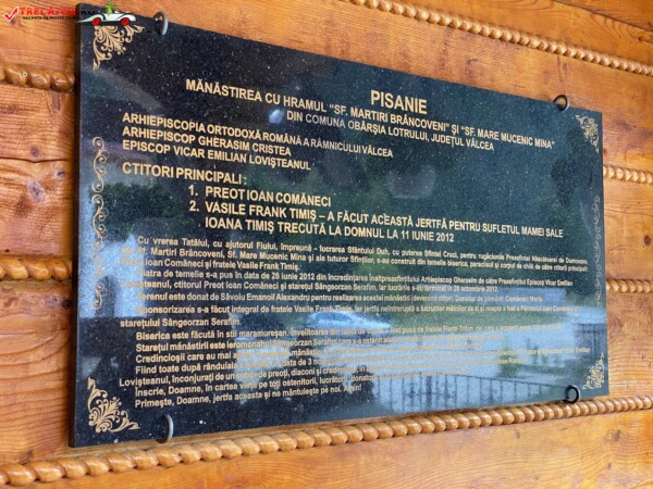 Piatra de temelie pentru noua biserică a mănăstirii de călugări cu hramurile „Sfinţii Martiri Brâncoveni” şi „Sfântul Mare Mucenic Mina” a fost pusă la data de 28 iunie 2012, cu binecuvântarea Înaltpreasfinţitului Părinte Gherasim, Arhiepiscopul Râmnicului, de către Preasfinţitul Părinte Emilian Lovişteanul, Episcop Vicar al Arhiepiscopiei Râmnicului.