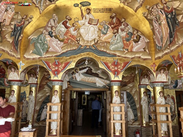 Tot pe acest altar, lângă racla cu sfintele moaște, în crucea folosită pentru binecuvântare la praznice, se găsește o mică părticică din lemnul Sfintei Cruci a lui Isus.