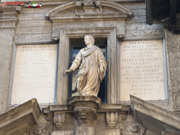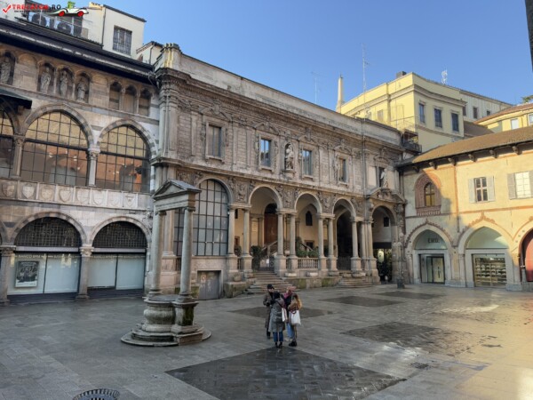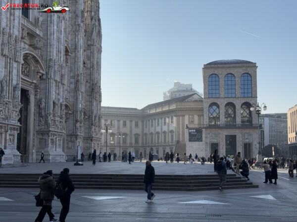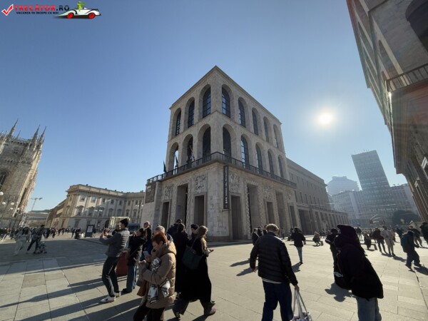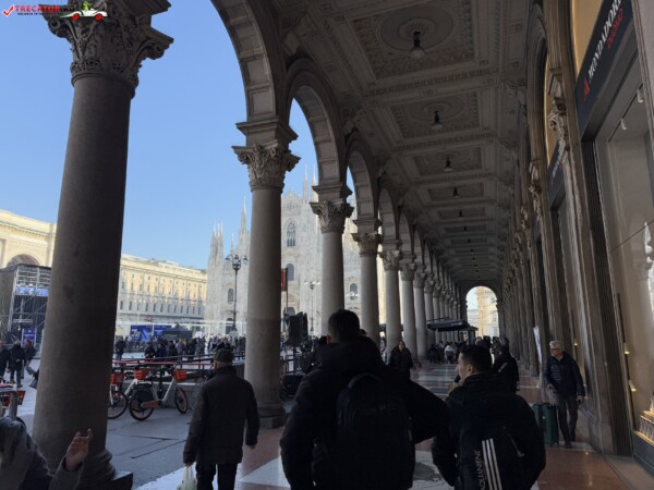 Alături se găsește Galleria Vittorio Emanuele II, cel mai vechi pasaj comercial din Italia, renumit pentru arhitectura sa elegantă și magazinele de lux.
