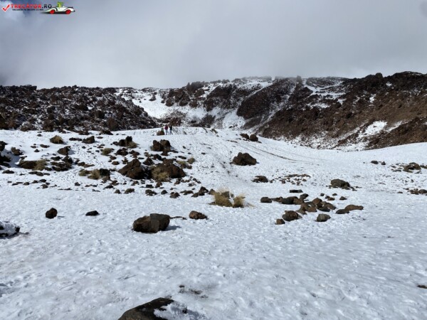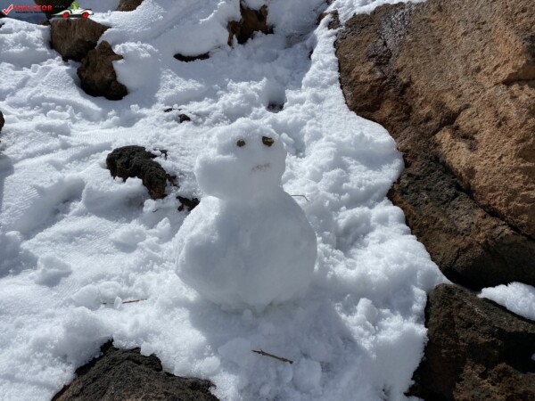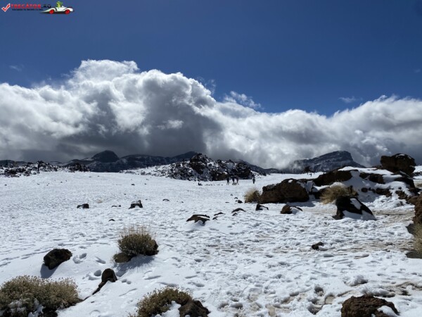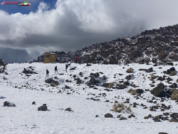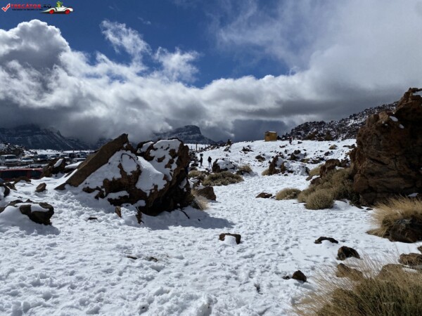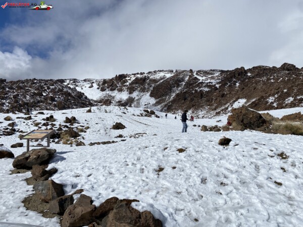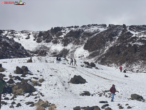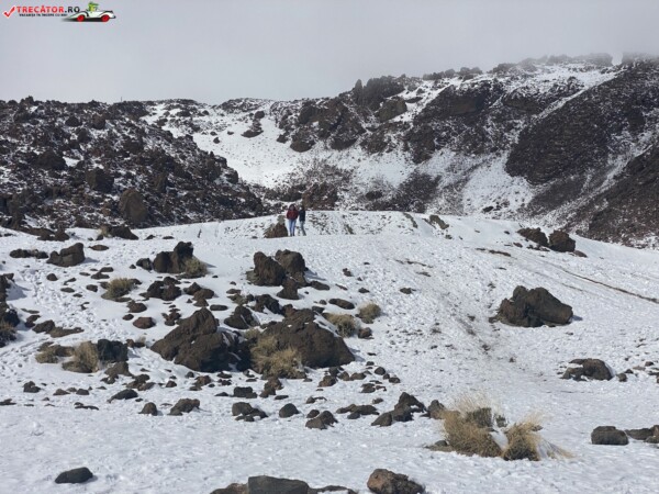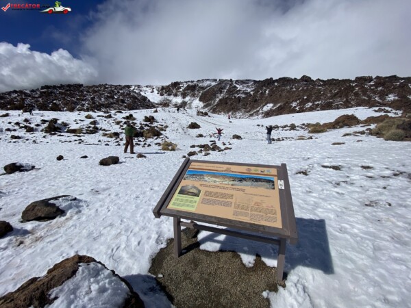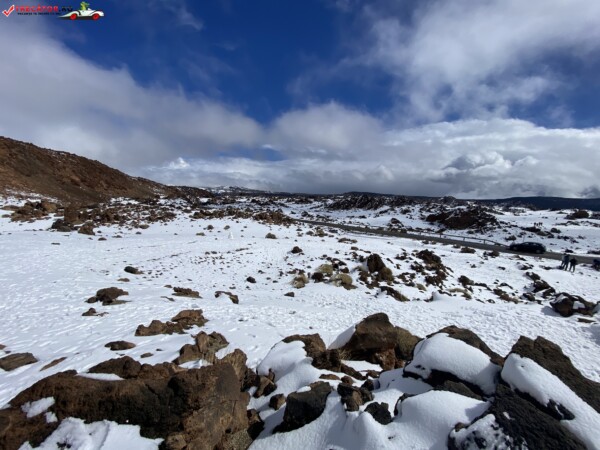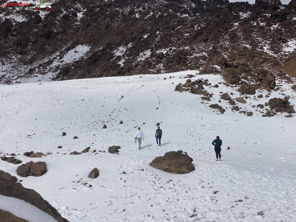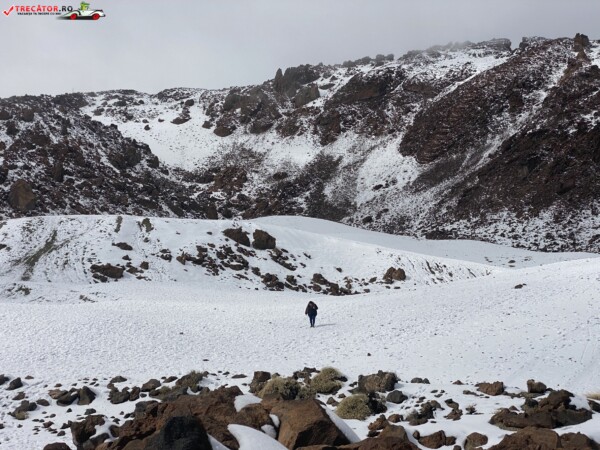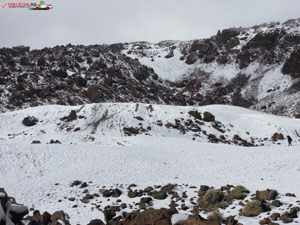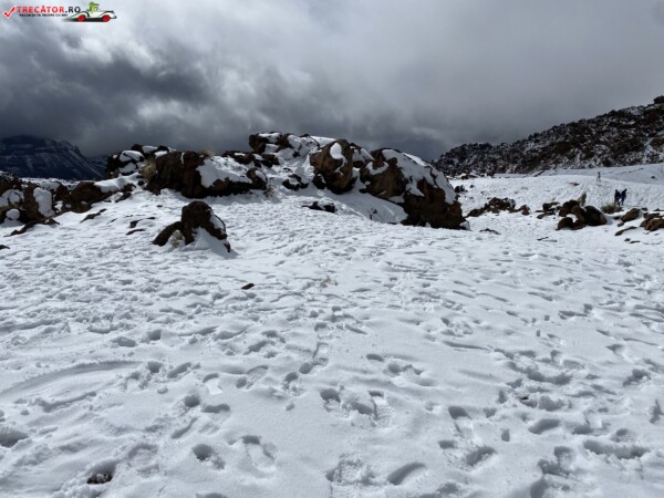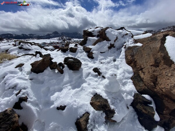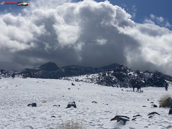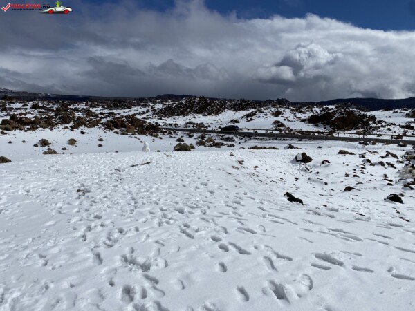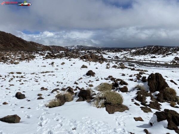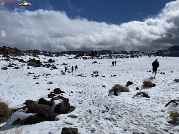 După ce am văzut anterior mulți kilometri de peisaje accidentate formate din lavă și roci de culoare închisă, o întindere uriașă de pământ plat, de culoare deschisă, care arăta ca nisipul, sa deschis brusc în fața mea. În aceste locuri de obicei nu ninge. Eu am prins zăpadă spre bucuria copiilor.