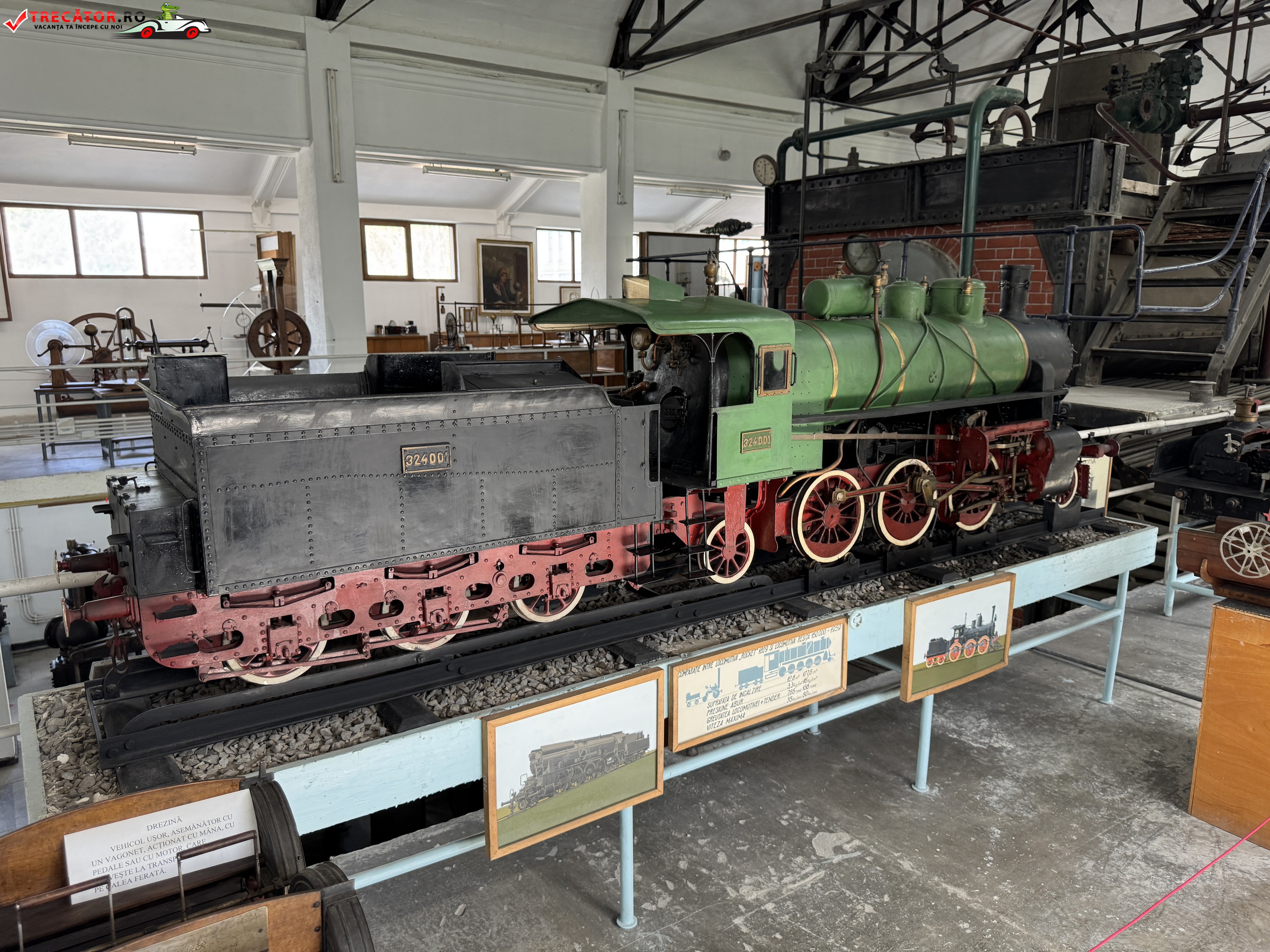 Forța locului stă în amploarea colecțiilor și în diversitatea lor. Datele publice indică o suprafață de expunere de aproximativ 4.500 de metri pătrați în interior și circa 1.000 de metri pătrați în aer liber, alături de mii de piese dedicate mecanicii, electricității, energeticii, telecomunicațiilor, mașinilor de calcul, transporturilor și domeniului aerospațial. Printre exponatele emblematice se află automobilul aerodinamic creat de Aurel Persu, aparate și machete legate de pionierii aviației românești, dar și echipamente industriale care ilustrează începuturile electrificării și dezvoltării tehnice din România. Ansamblul oferă nu doar obiecte rare, ci și o lectură coerentă a felului în care invenția și utilajul au modelat viața urbană și economia modernă.