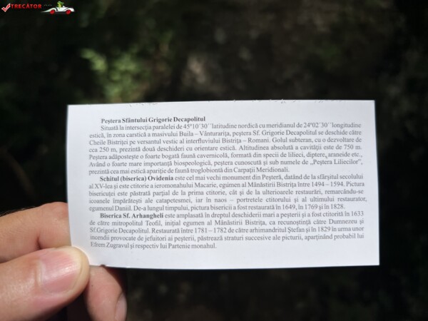 Peștera Liliecilor Sfantului Grigorie Decapolitul Published 12 august 2021 · Updated 21 aprilie 2025 „Numele de Pestera Liliecilor vine de la colonia de lilieci care traieste in galerii si care este protejata de lege. Iar numele de Grigorie Decapolitul vine de la faptul ca, in vremuri de restriste, calugarii ascundeau aici moastele sfinte”, Partajează asta: Dă clic pentru a partaja pe Facebook(Se deschide într-o fereastră nouă) Facebook Dă clic pentru a partaja pe X(Se deschide într-o fereastră nouă) X Similare
