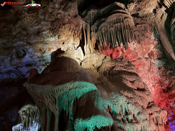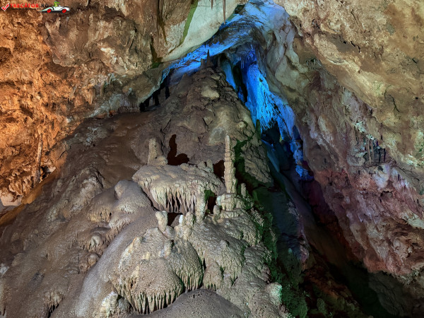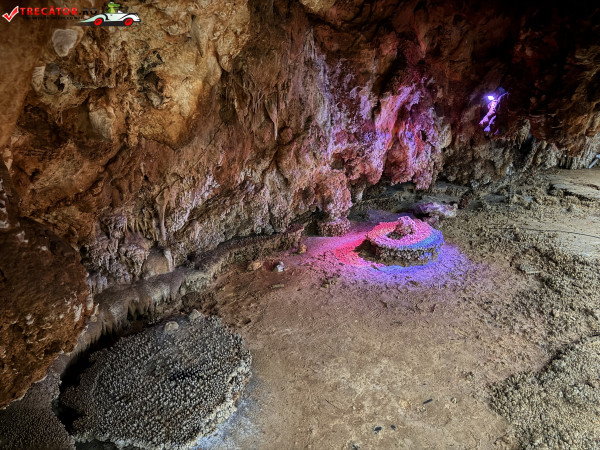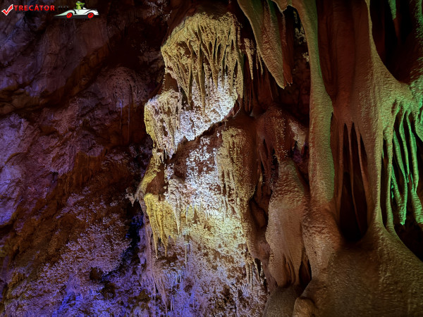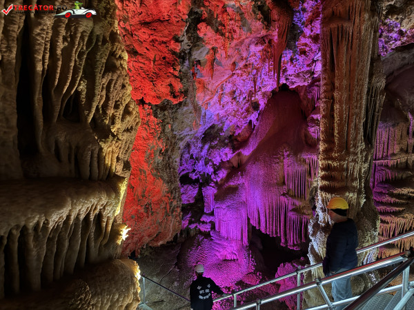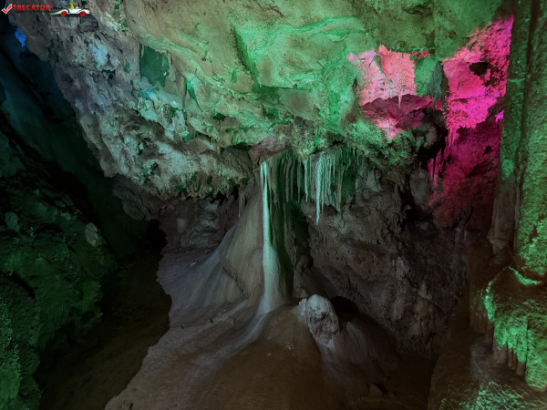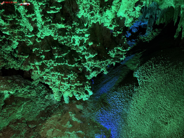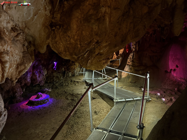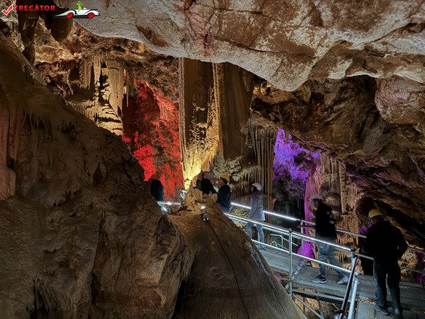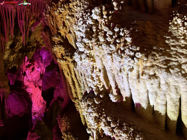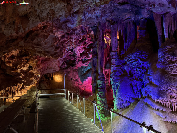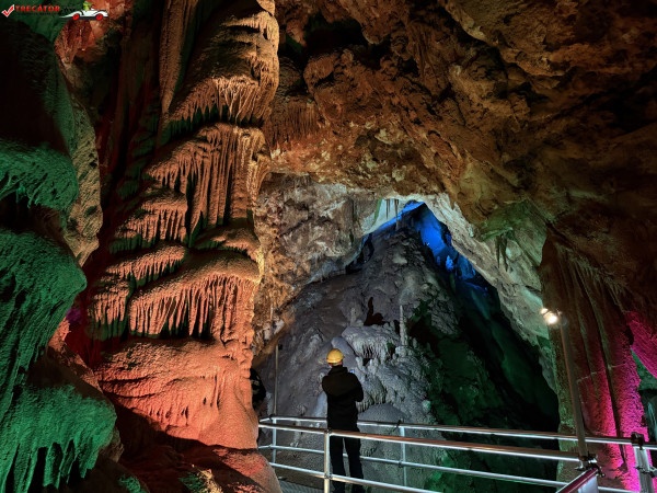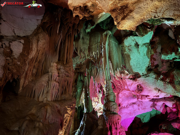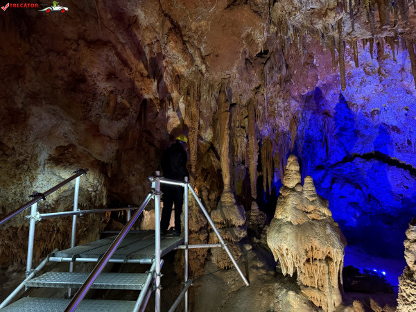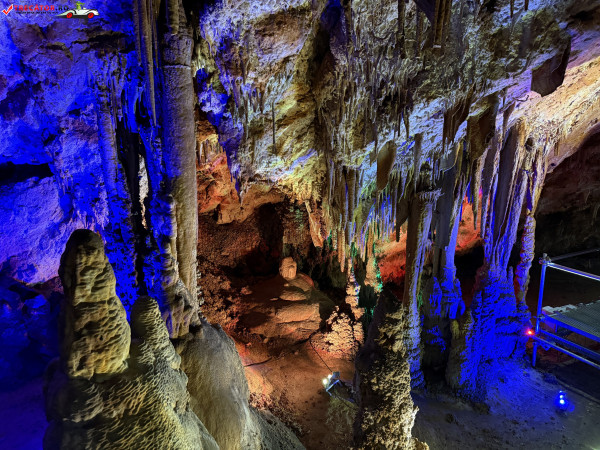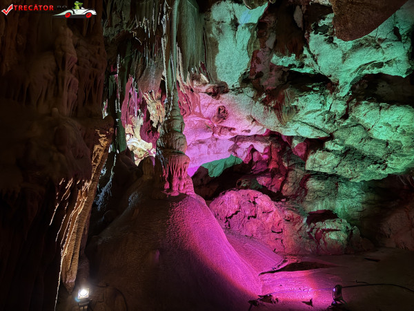 Turul ghidat parcurge aproximativ 200 de metri de galerii și include cinci săli distincte, fiecare cu formațiuni calcaroase spectaculoase: stalactite, stalagmite, cristalizări de onix semi-prețios și chiar forme care amintesc corali sau flori de gheață. Interiorul este iluminat artistic cu LED-uri colorate, pentru a scoate în evidență textura și strălucirea formațiunilor.