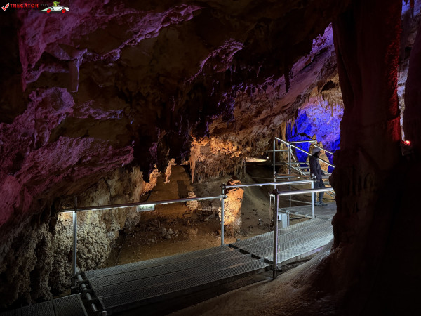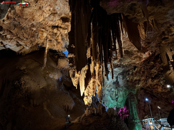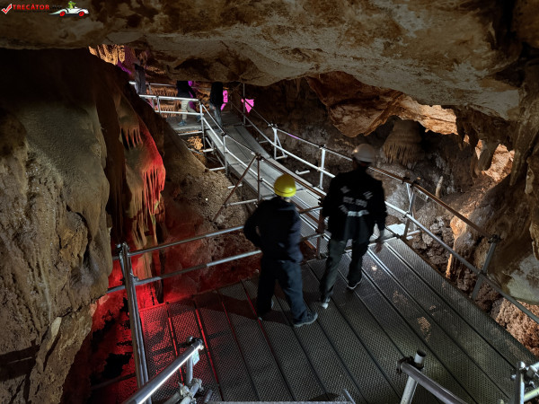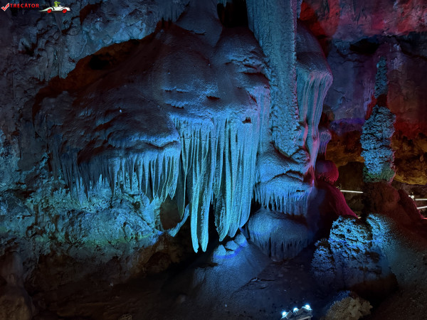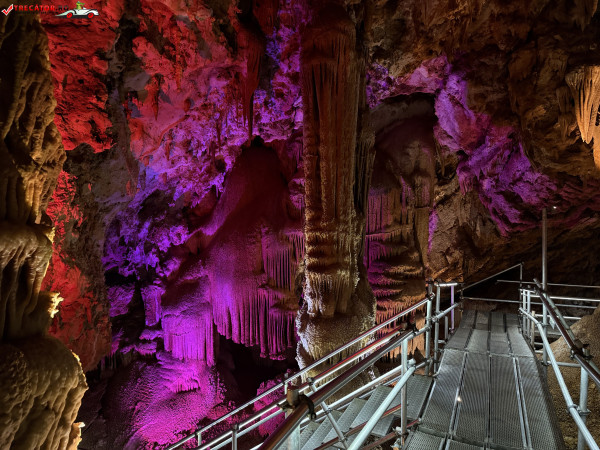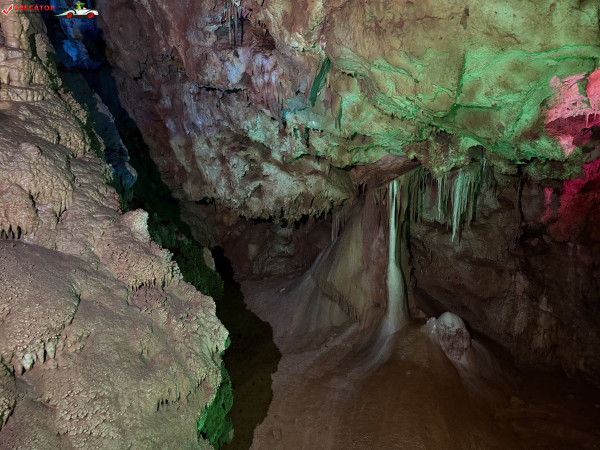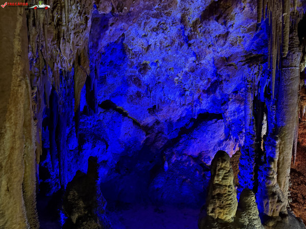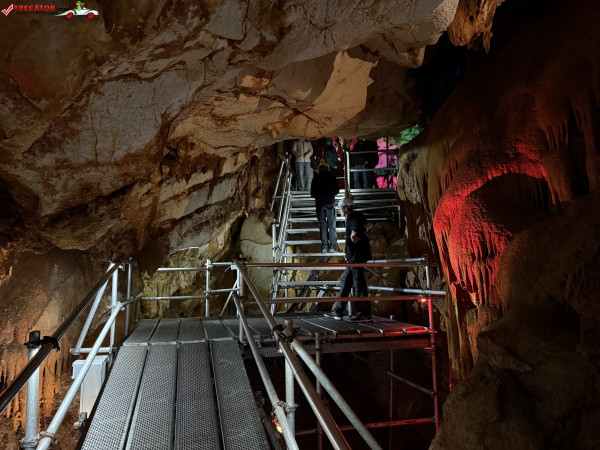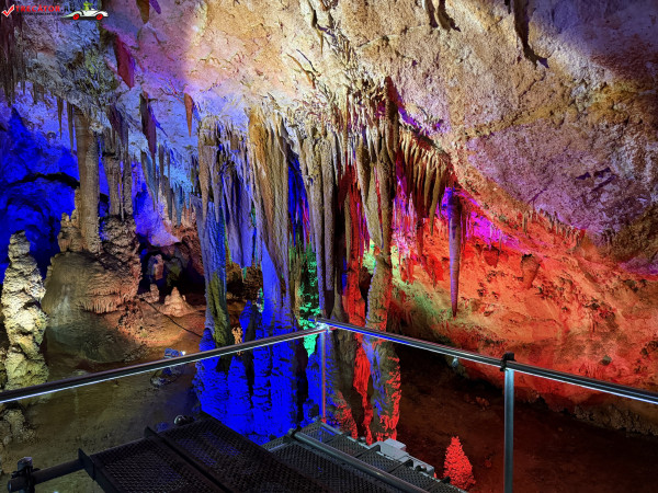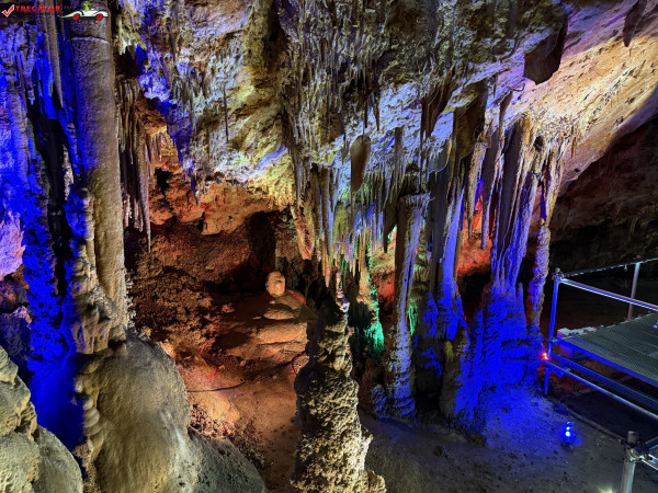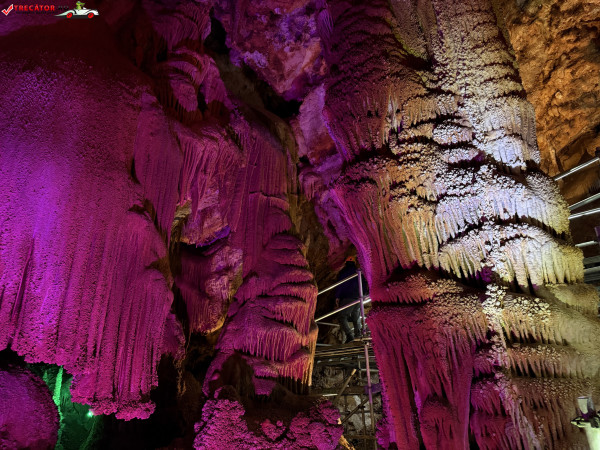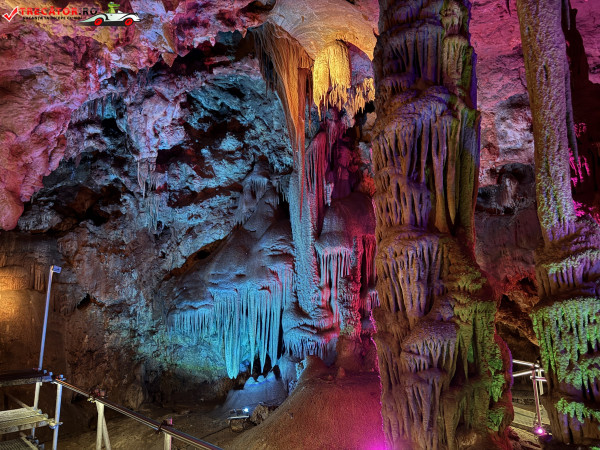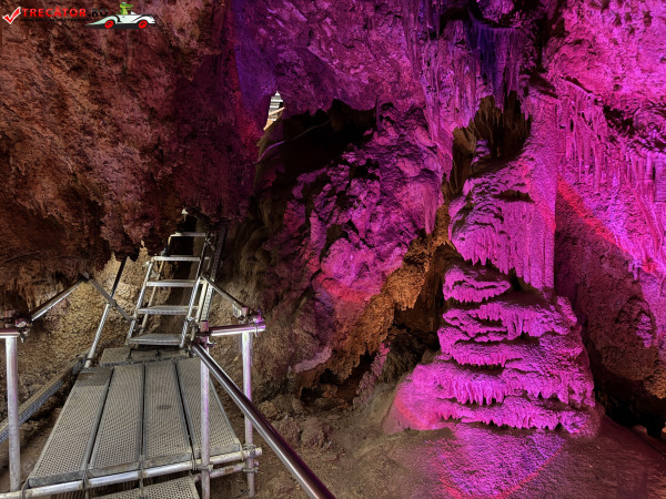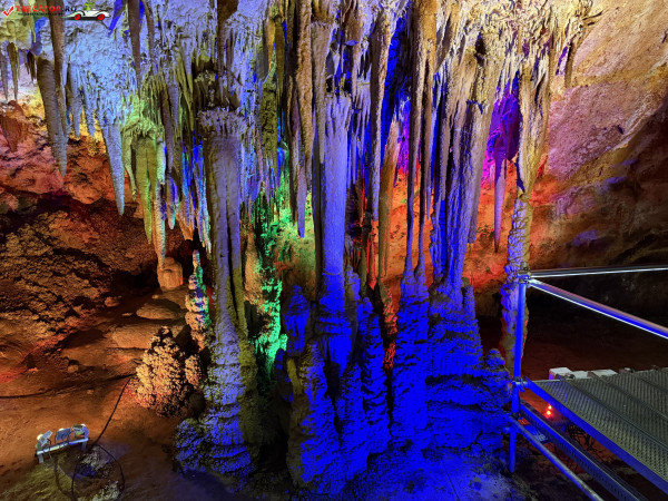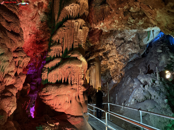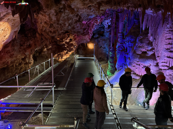 Turul ghidat parcurge aproximativ 200 de metri de galerii și include cinci săli distincte, fiecare cu formațiuni calcaroase spectaculoase: stalactite, stalagmite, cristalizări de onix semi-prețios și chiar forme care amintesc corali sau flori de gheață. Interiorul este iluminat artistic cu LED-uri colorate, pentru a scoate în evidență textura și strălucirea formațiunilor.