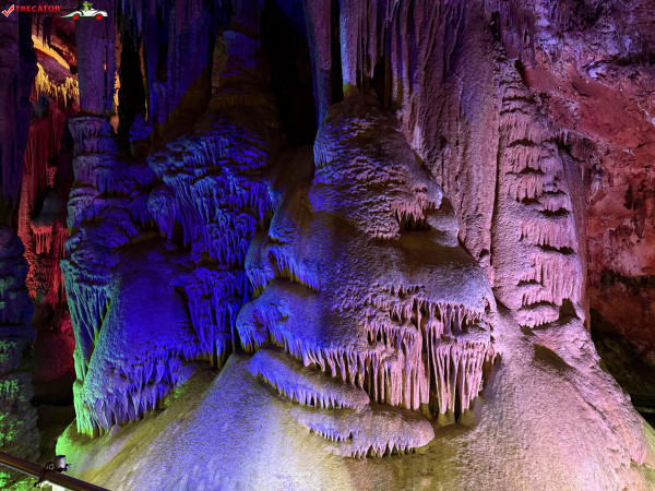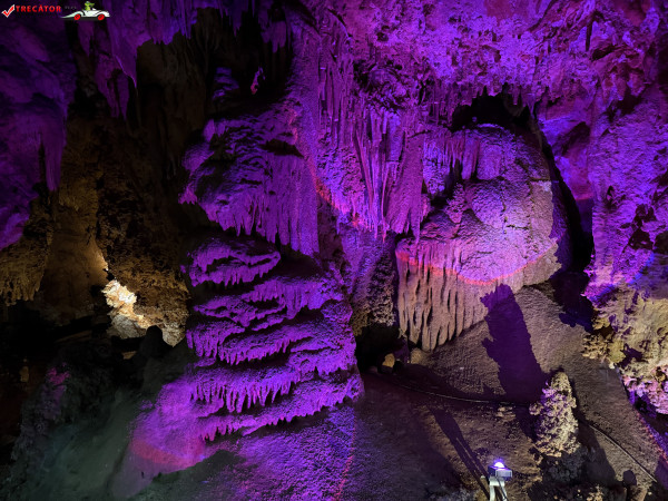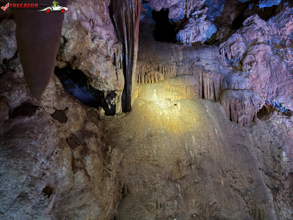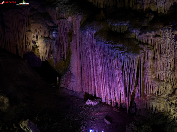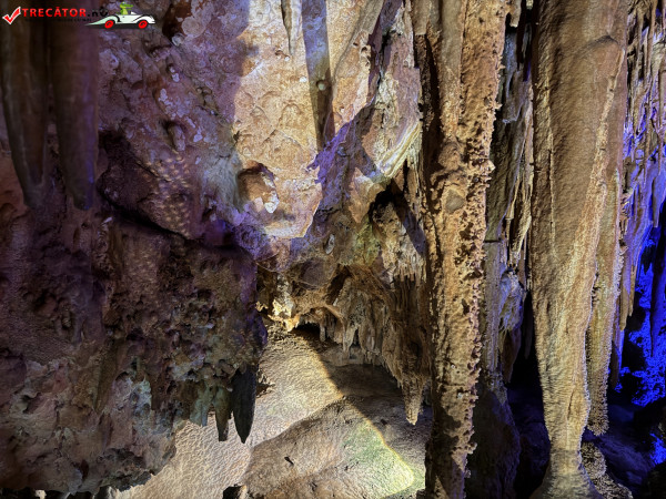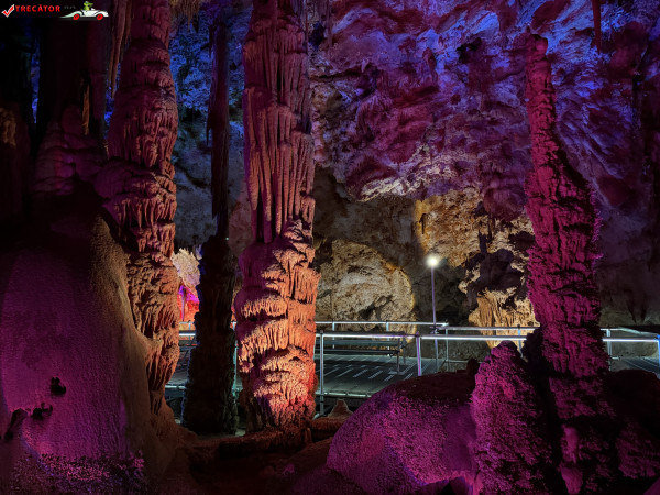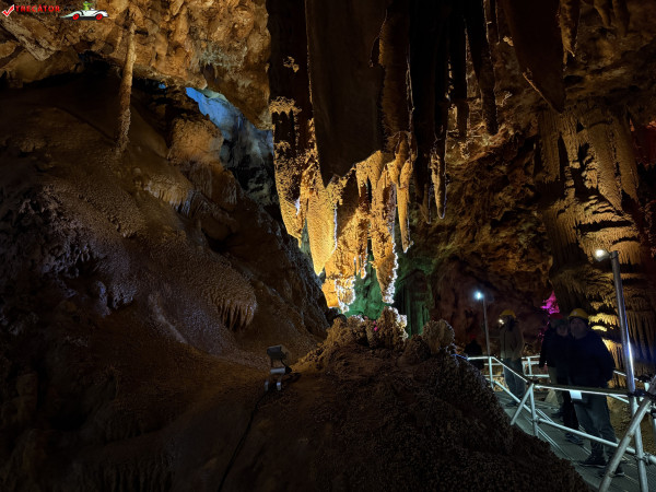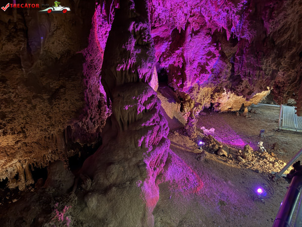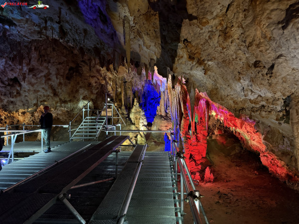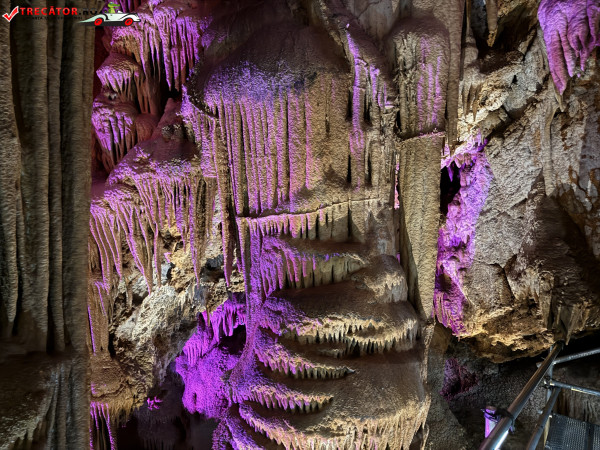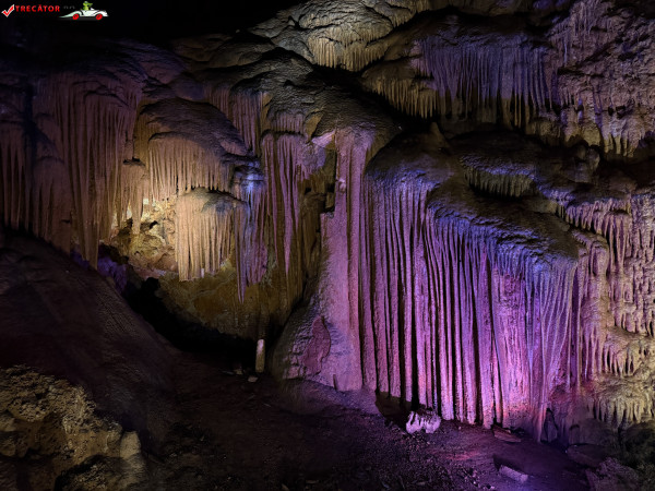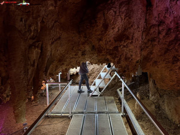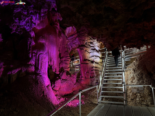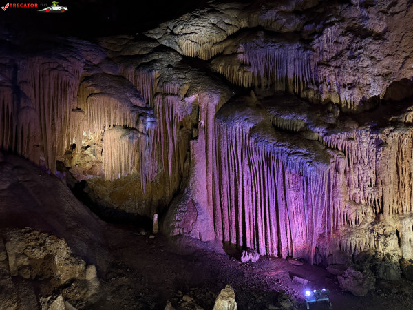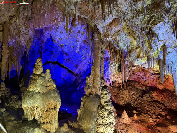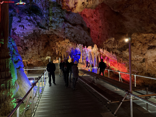 Turul ghidat parcurge aproximativ 200 de metri de galerii și include cinci săli distincte, fiecare cu formațiuni calcaroase spectaculoase: stalactite, stalagmite, cristalizări de onix semi-prețios și chiar forme care amintesc corali sau flori de gheață. Interiorul este iluminat artistic cu LED-uri colorate, pentru a scoate în evidență textura și strălucirea formațiunilor.