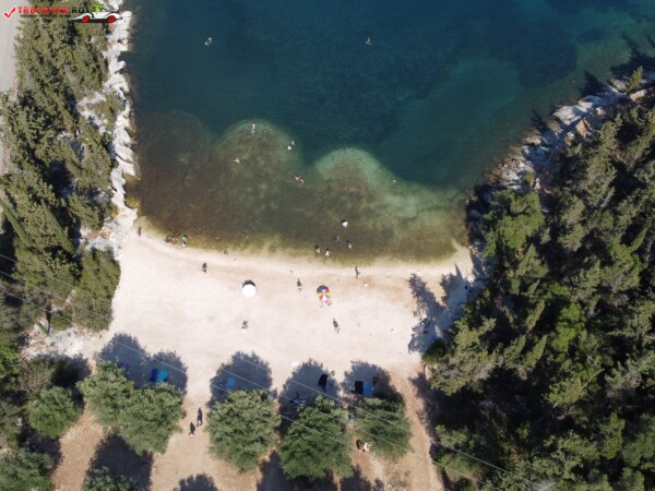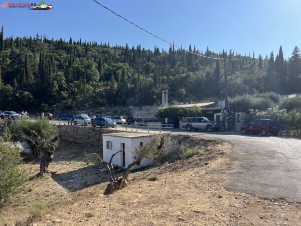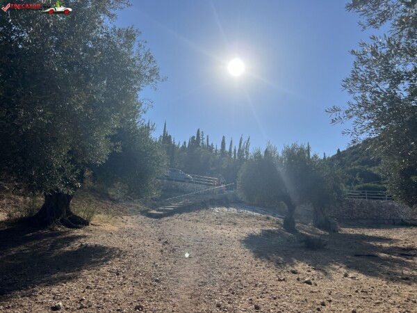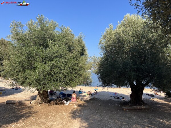 Este înconjurată de o pădure densă de măslini și pini, care oferă umbră naturală și un cadru pitoresc.