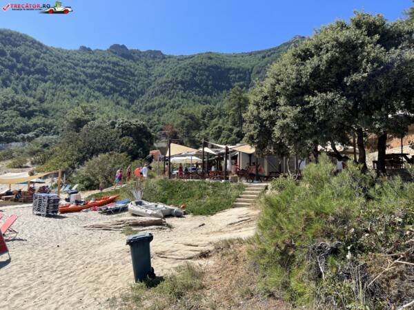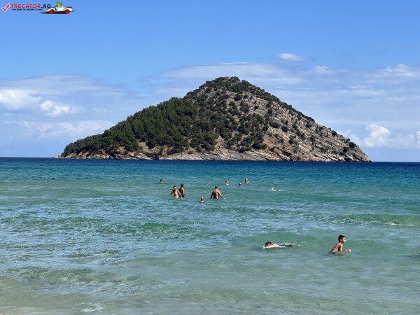 Apa e de un albastru tucoaz incredibil de limpede si trebuie sa mergi binisor pana dai de ceva adancime ca sa te poti balaci in voie. Doar pe stancile din jur mai vezi din loc in loc cate un arici de mare. Atentie insa pentru ca intepaturile lor sunt destul de alergice si va puteti strica o vacanta dupa o experienta cu ei.