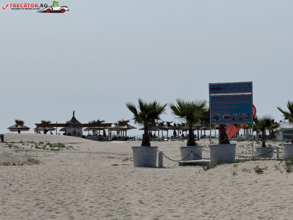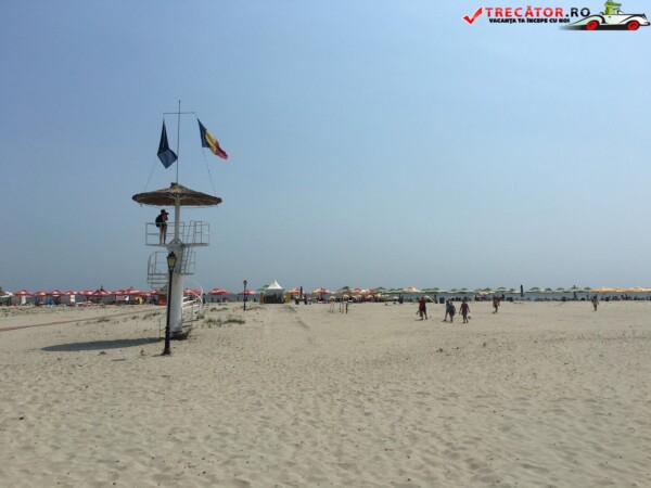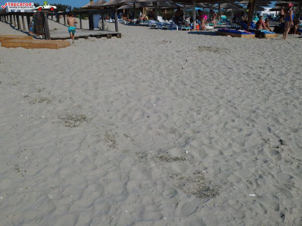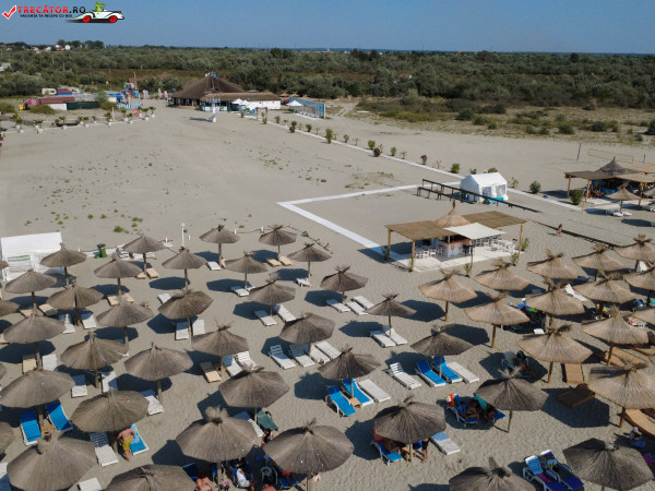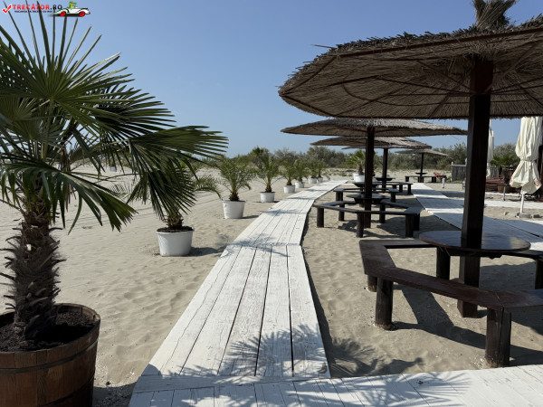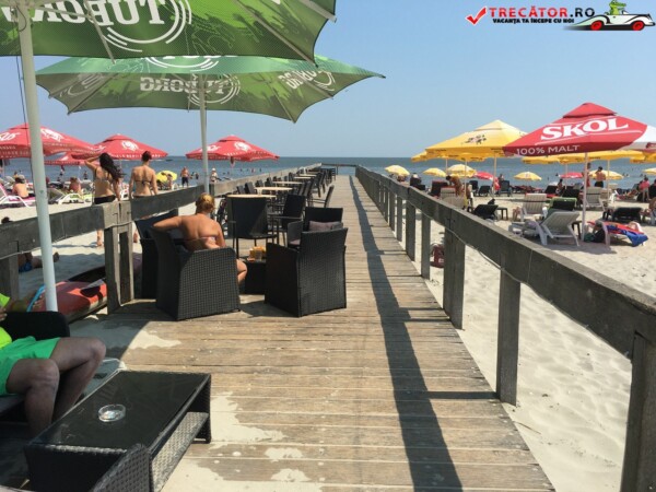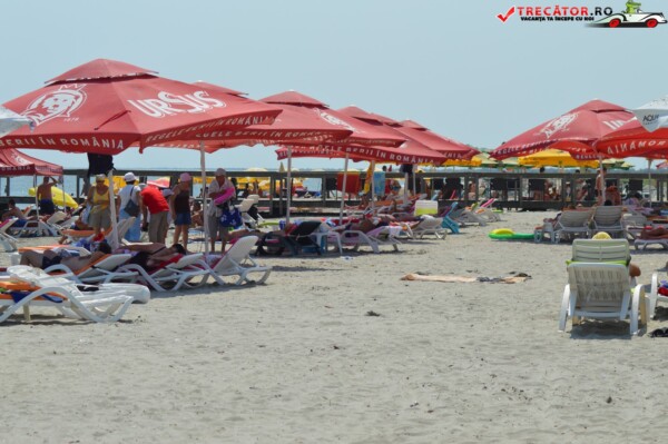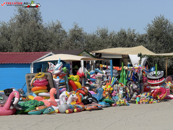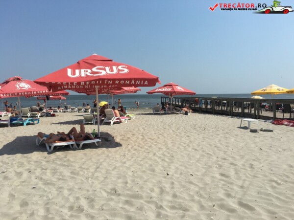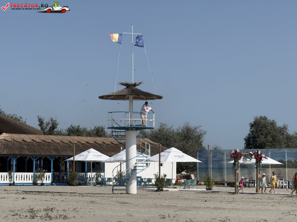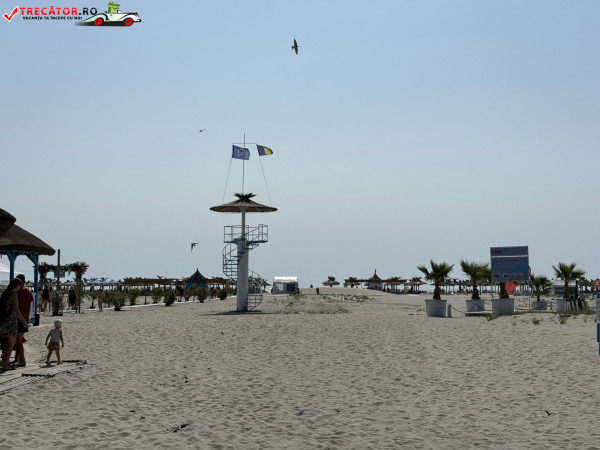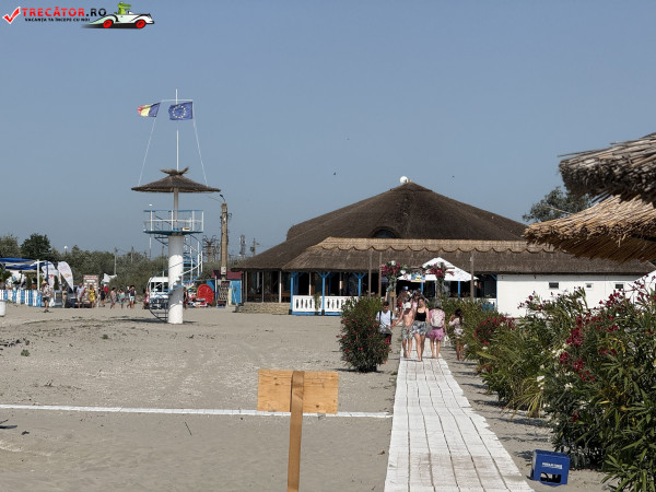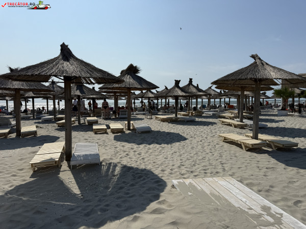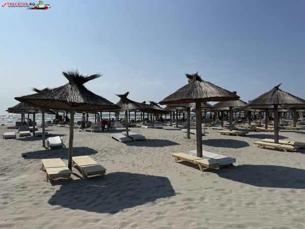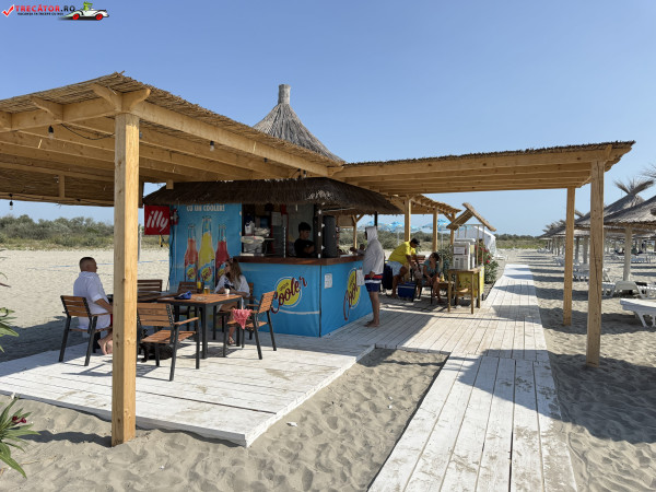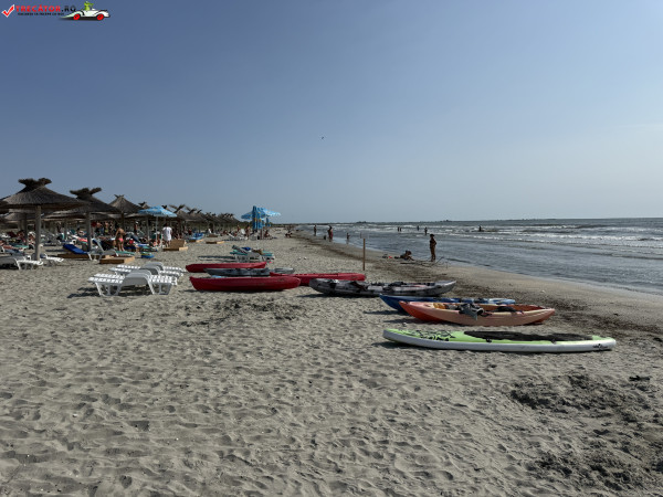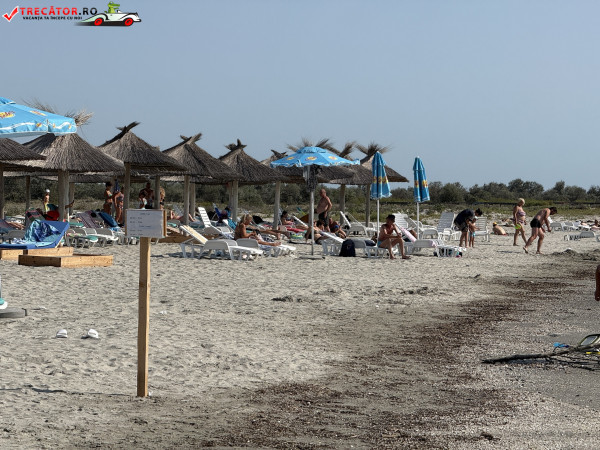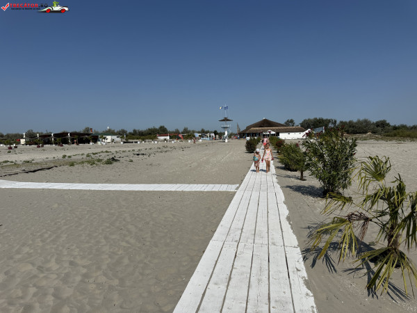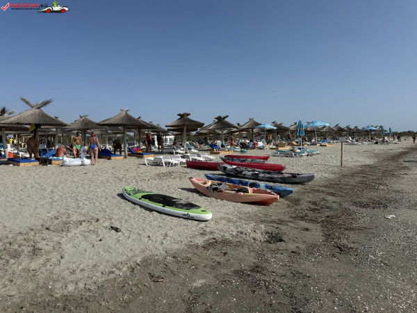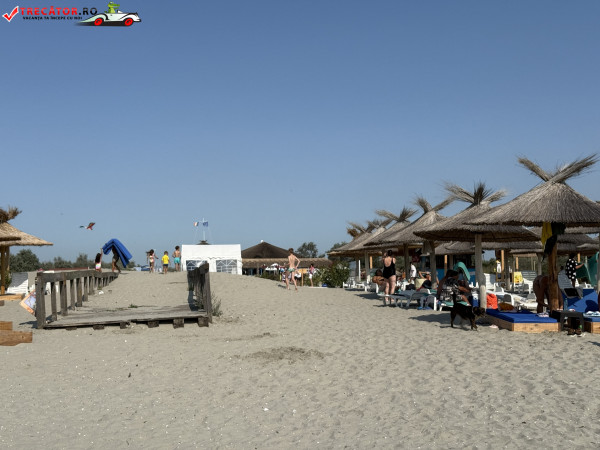 Pe plajă regăsim facilități moderne: o scenă-amfiteatru, locuri de joacă, dușuri, punct salvamar, module-chioșc, grupuri sanitare, pasarele acvatice la 50 m de țărm, bănci de lemn, umbrele din stuf și coșuri de gunoi. De asemenea, sunt disponibile șezlonguri și umbrele gratuite, restaurante locale și magazine unde poți achiziționa gustări.