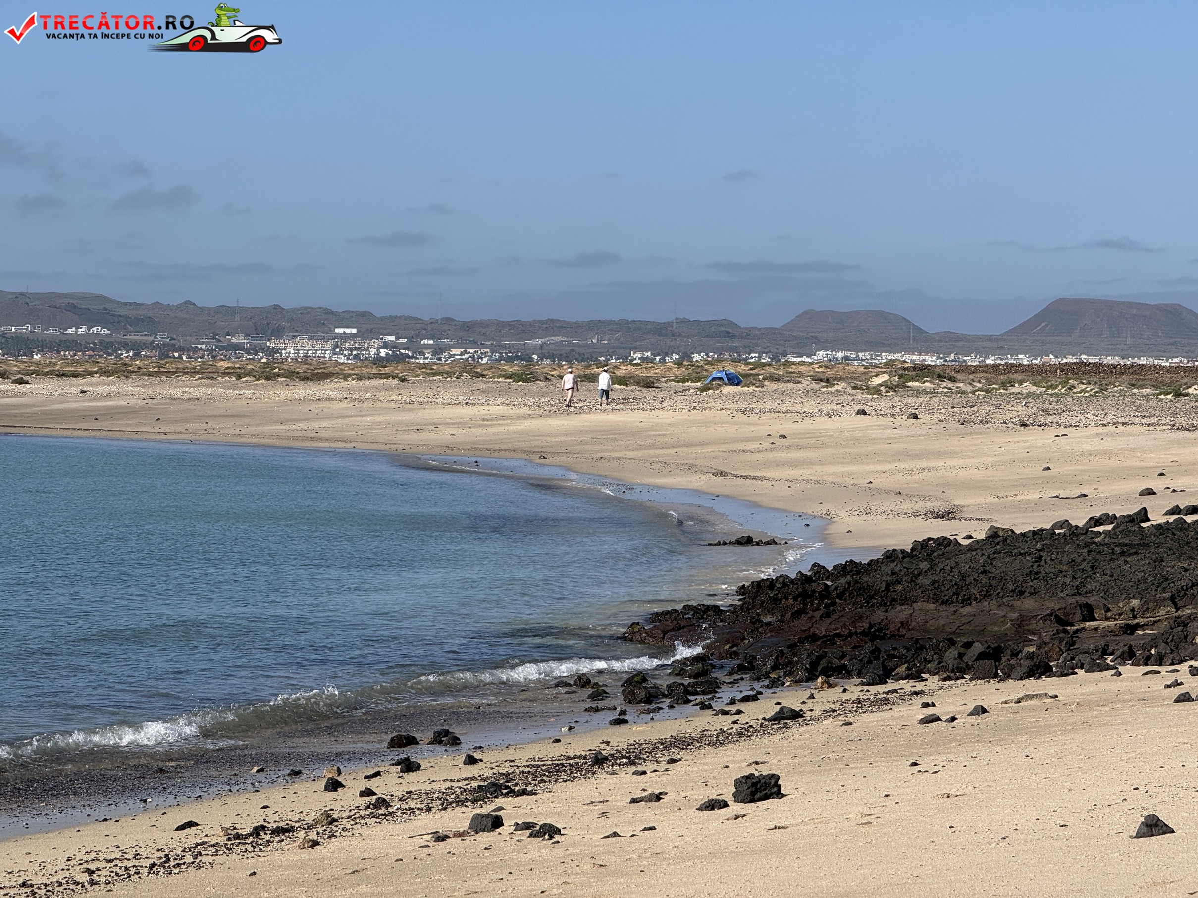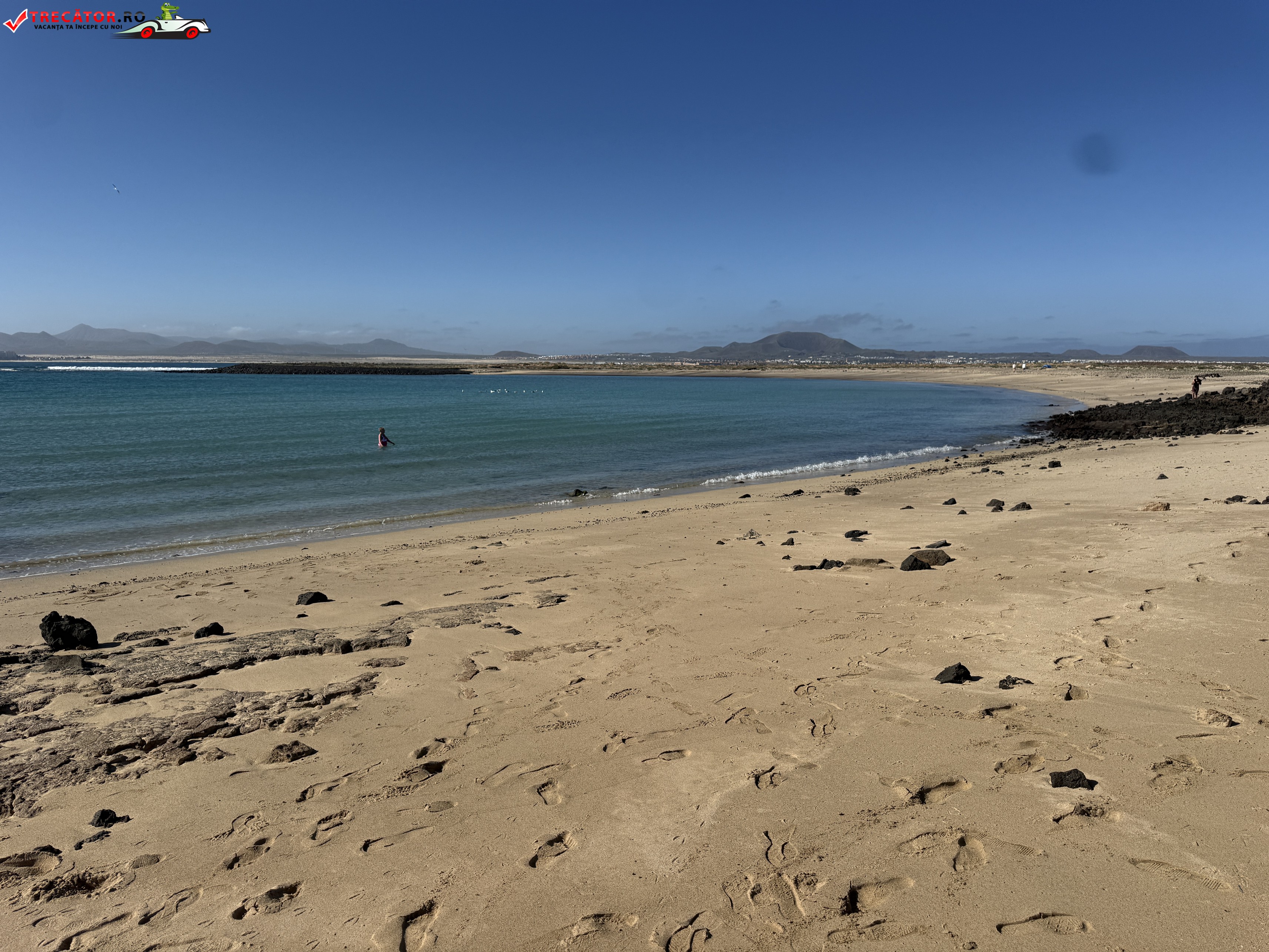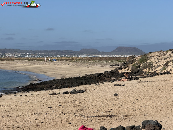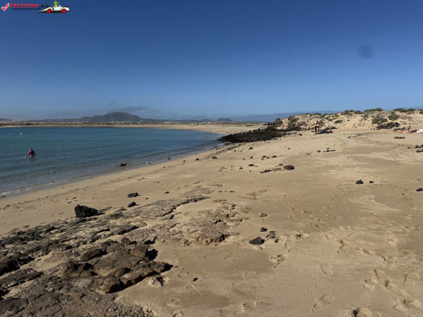 Playa de la Concha este plaja-emblemă a Islote de Lobos, micuța insulă protejată aflată chiar în fața stațiunii Corralejo, în nordul Fuerteventurii. Golful are formă semicirculară și e ferit de vânt, ceea ce explică apa foarte limpede, cu nuanțe turcoaz, de obicei calmă și potrivită pentru înot relaxat sau snorkeling ușor.