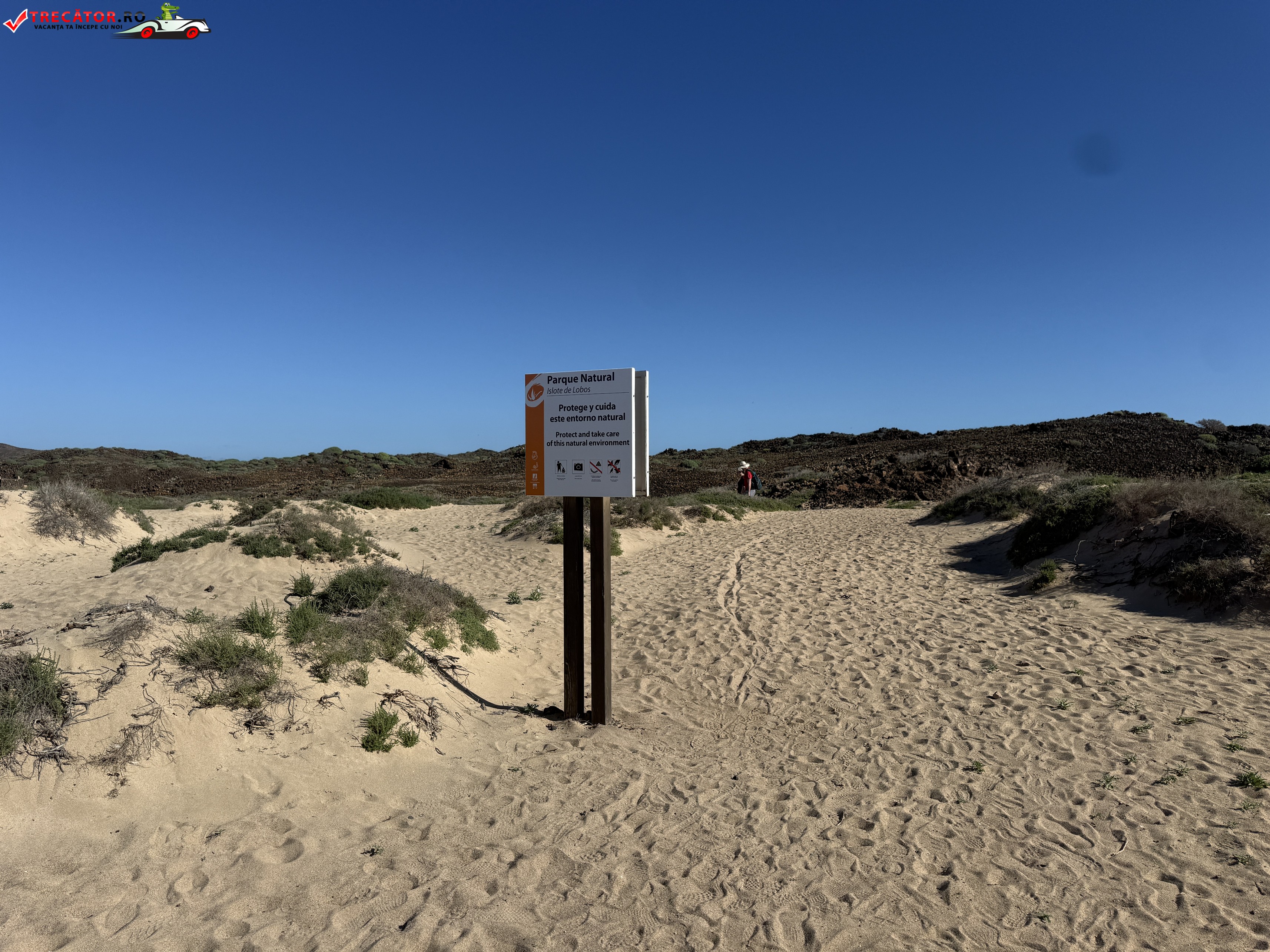 Accesul se face, de regulă, cu ferry sau water-taxi din Corralejo, apoi urmează o plimbare scurtă pe jos până la plajă. Pentru că insula este spațiu natural protejat, intrarea este condiționată de obținerea unei autorizații gratuite („Lobos Pass”), menită să limiteze numărul de vizitatori; unele bilete includ gestionarea permisului, dar merită verificat înainte de plecare.