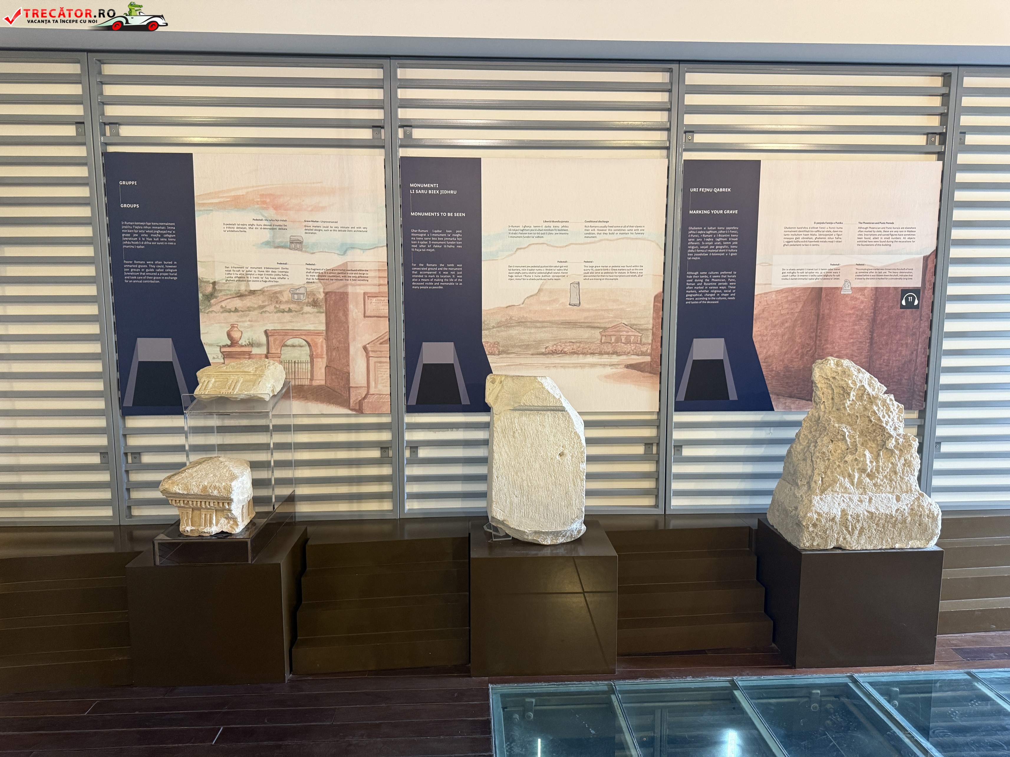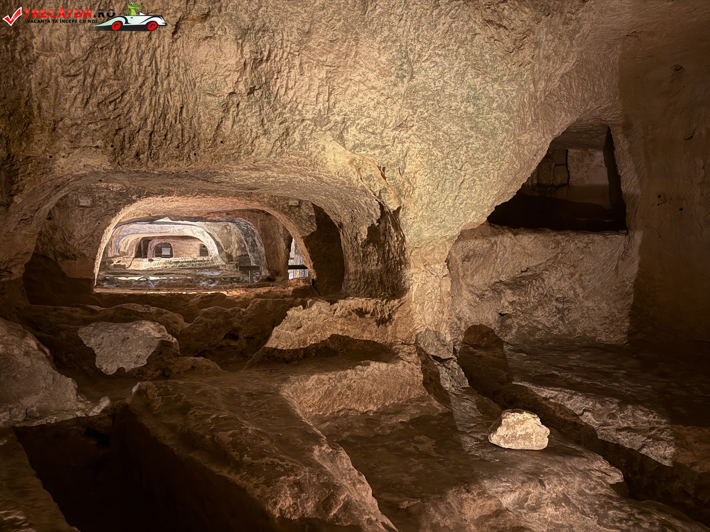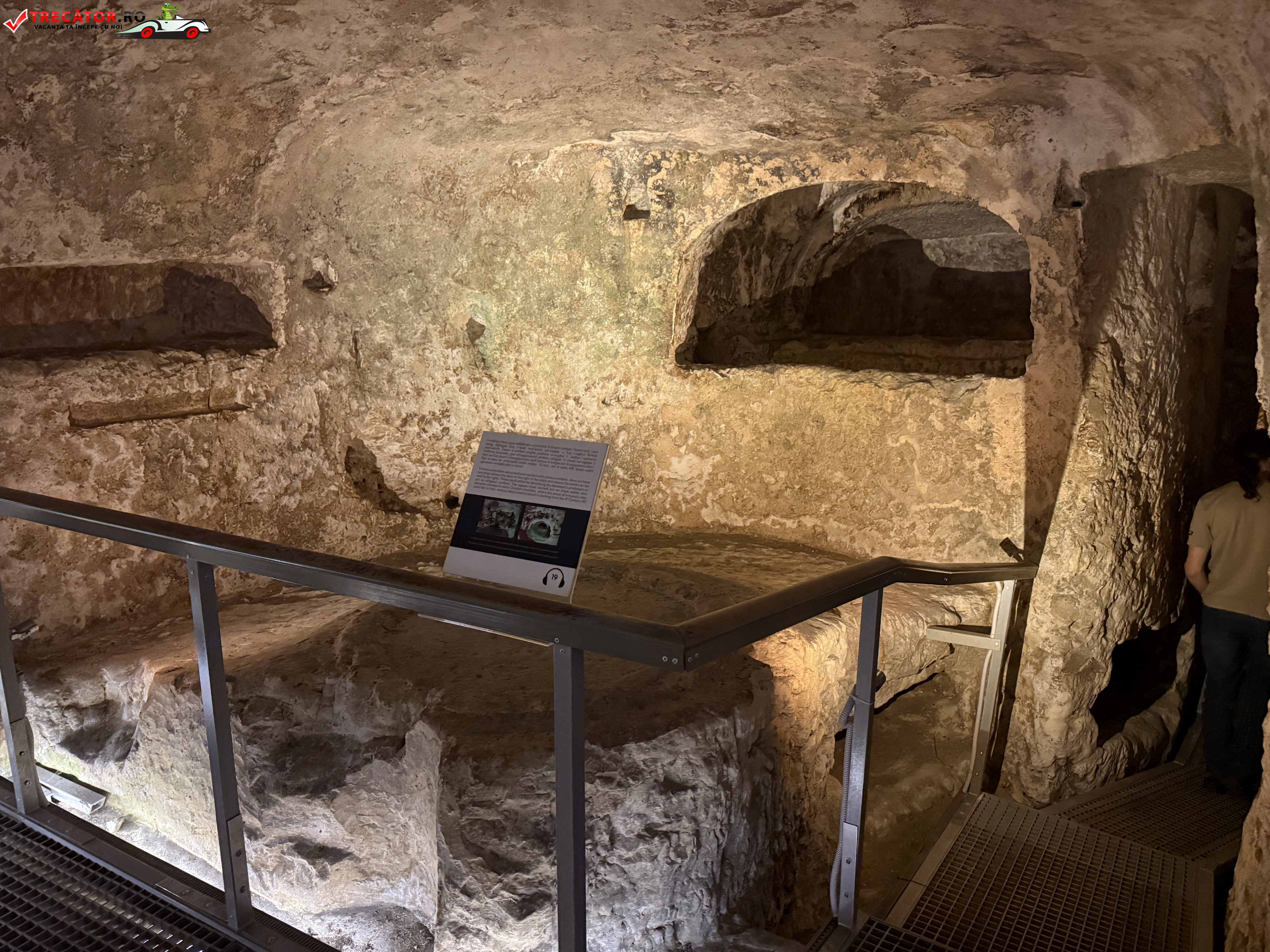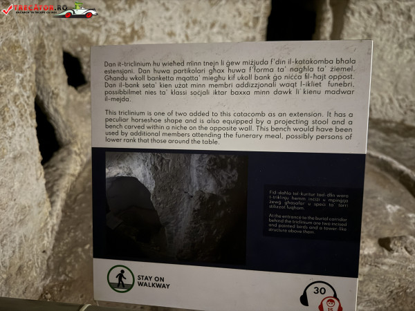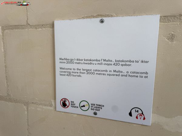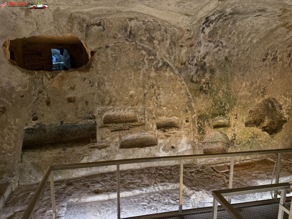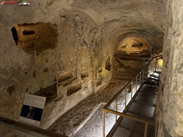 Situate în orașul Rabat, catacombele sunt formate dintr-o rețea impresionantă de galerii și camere funerare săpate în calcar, utilizate pentru înmormântări colective. Spre deosebire de tradiția romană a incinerării, aici se observă clar trecerea către înhumare, un indiciu al schimbărilor culturale și religioase ale epocii. Unele morminte includ mese de piatră (agape tables), folosite probabil pentru ritualuri comemorative.