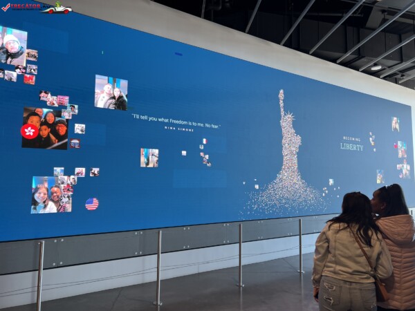 Statuia a fost construită în Franța și a fost asamblată în New York în 1886. Ea are o înălțime de 93 de metri și este situată pe o insulă numită Liberty Island, la aproximativ 2,5 kilometri de coasta de sud a Manhattan-ului. Statuia este făcută din cupru și se ridică pe un piedestal din piatră de 47 de metri înălțime.