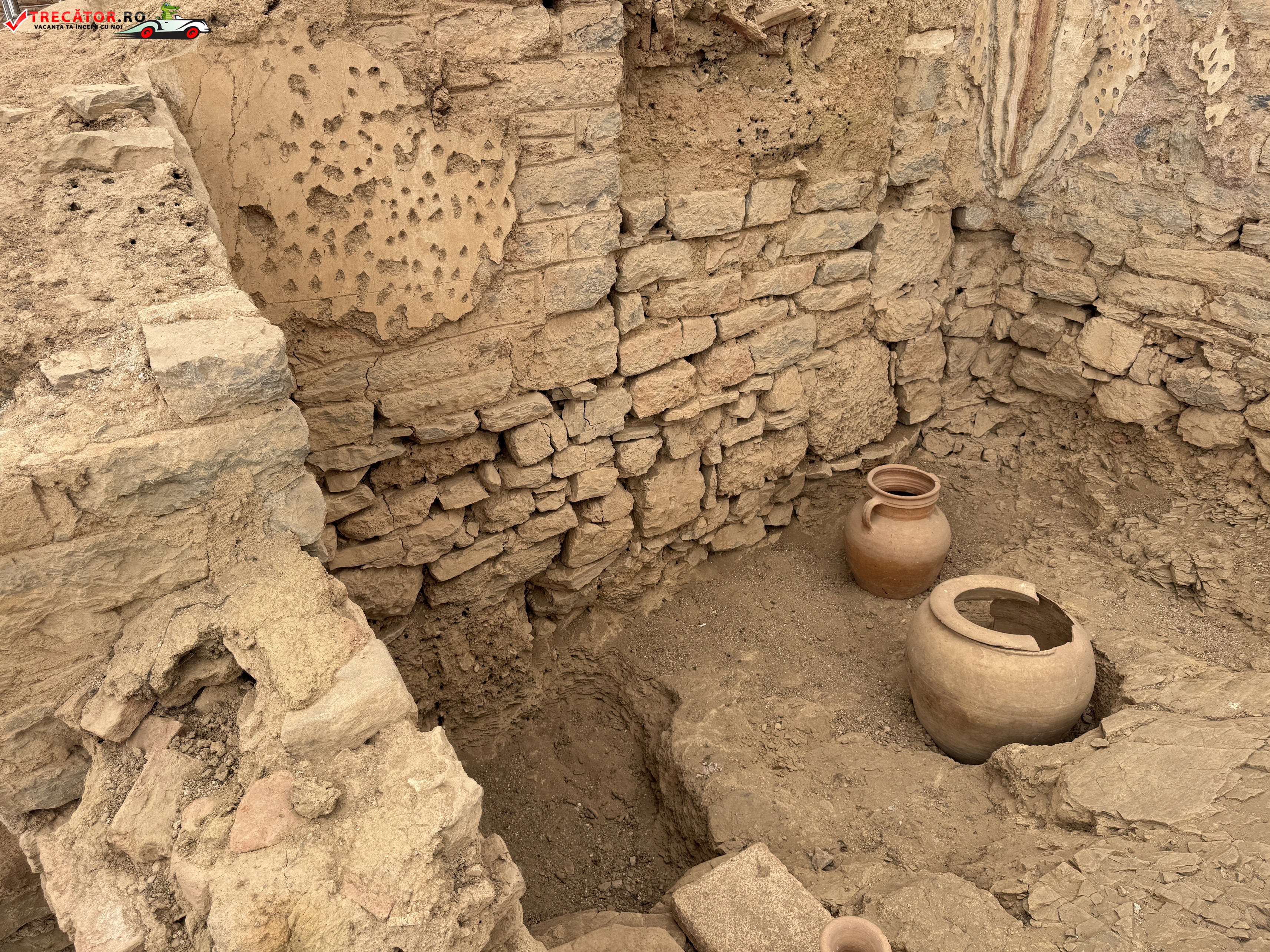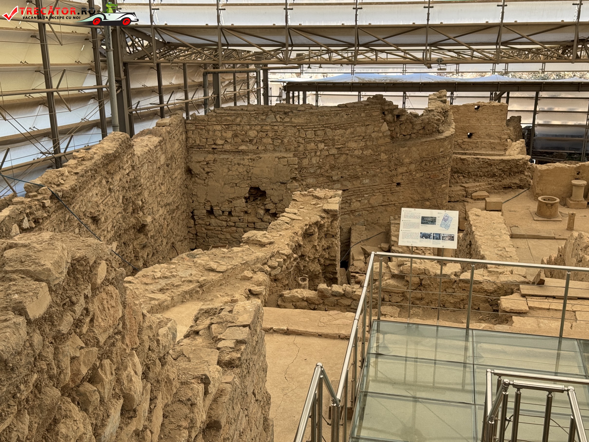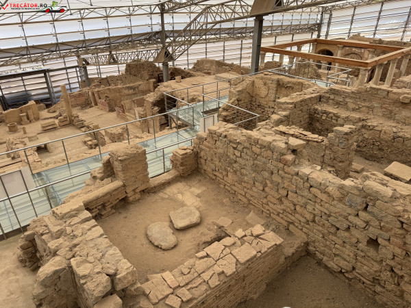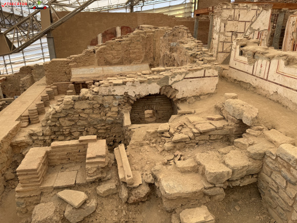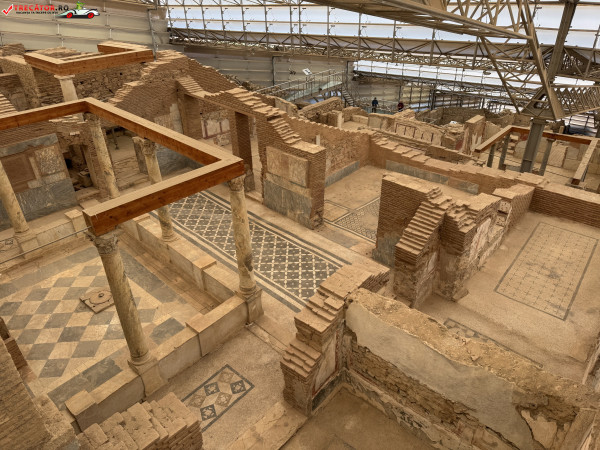 Complexul este alcătuit din mai multe case dispuse pe trei terase, construite începând cu secolul I d.Hr. și locuite până în secolul al VII-lea. Arhitectura urmează planul urbanistic hipodamic, cu străzi perpendiculare și o organizare eficientă a spațiului. Locuințele erau dotate cu curți interioare, sisteme de încălzire prin podea și chiar instalații de apă caldă și rece, ceea ce indică un nivel ridicat de confort pentru acea epocă.